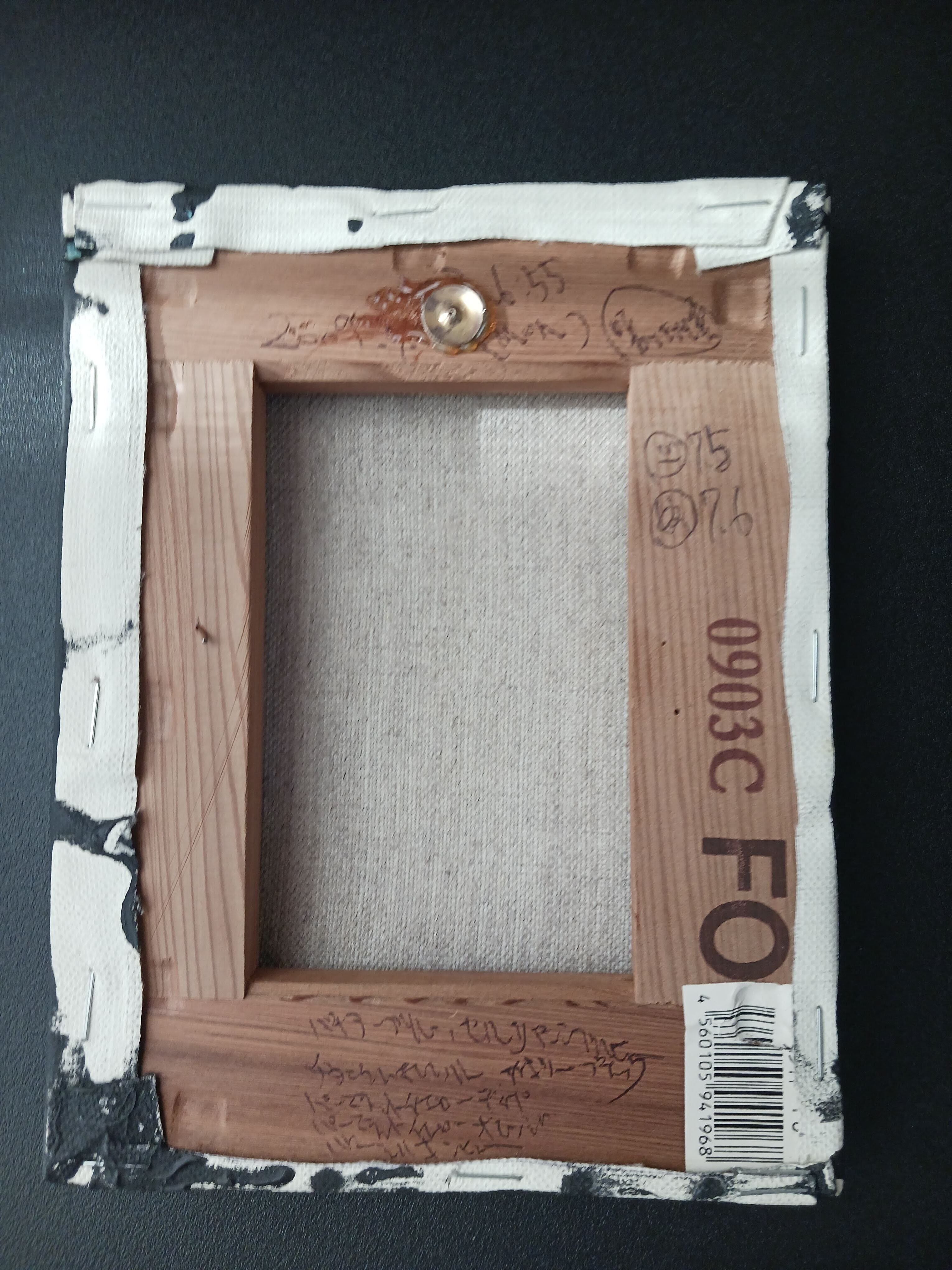 枠の色はアクリルジェッソ、中心の空は油絵具で描いています。