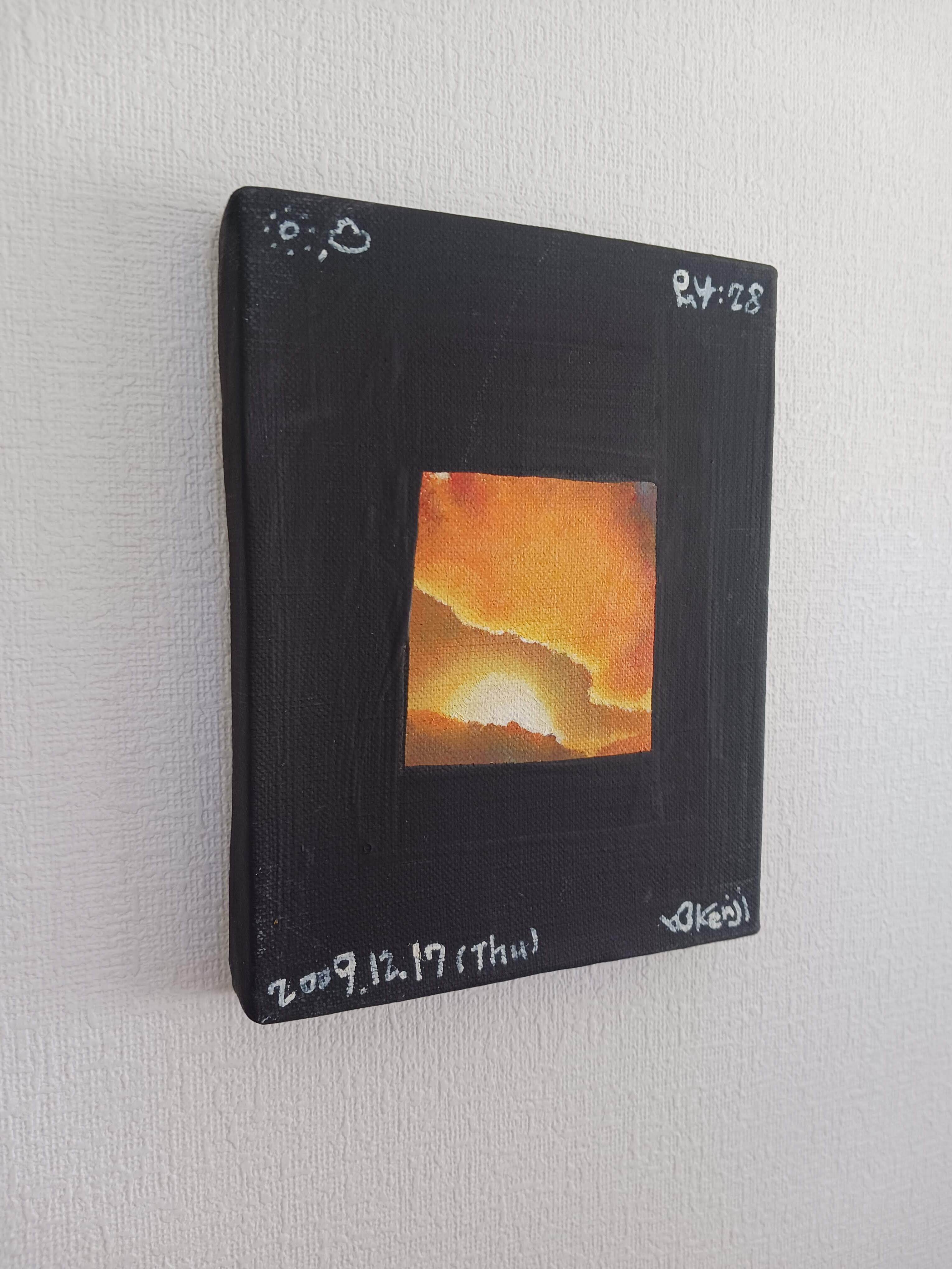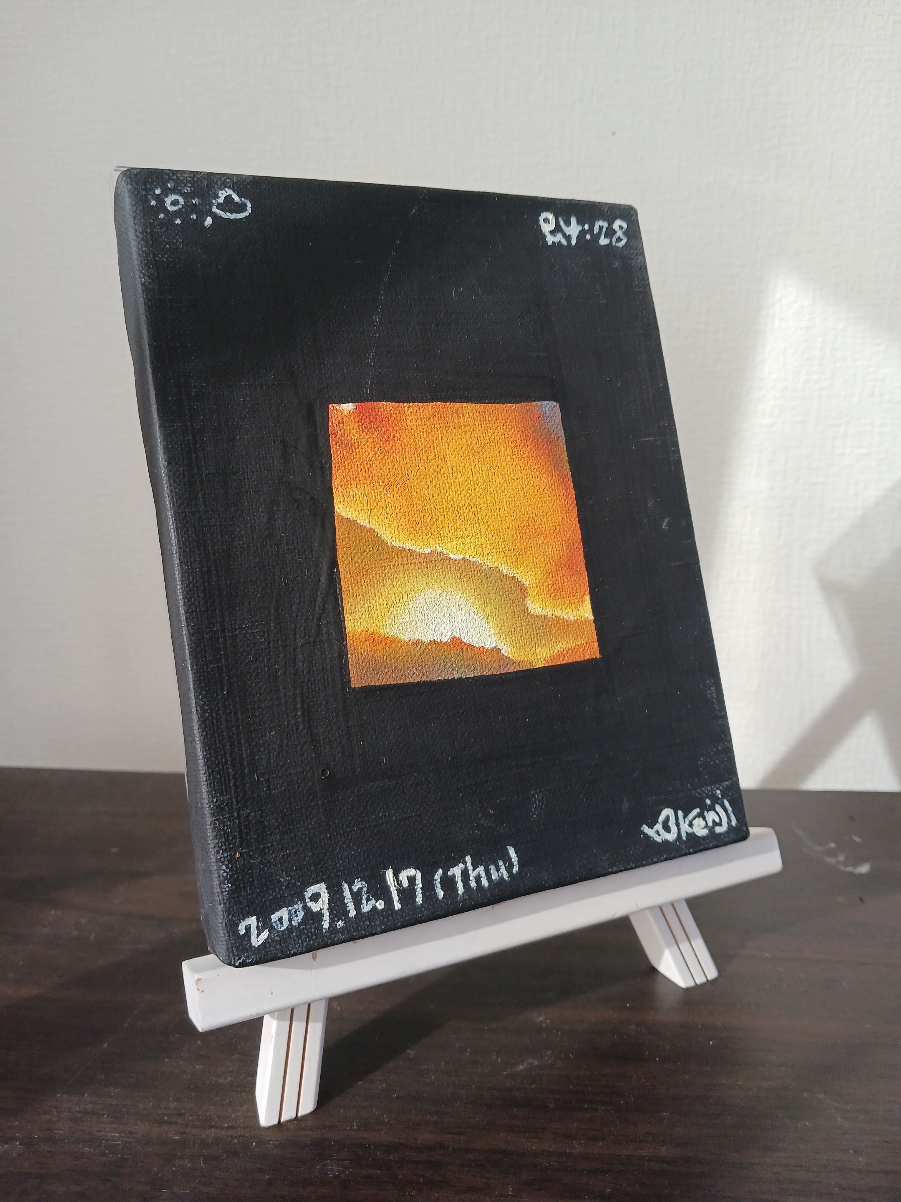 作品の四隅に、日付と天気と時間とサインを入れています。