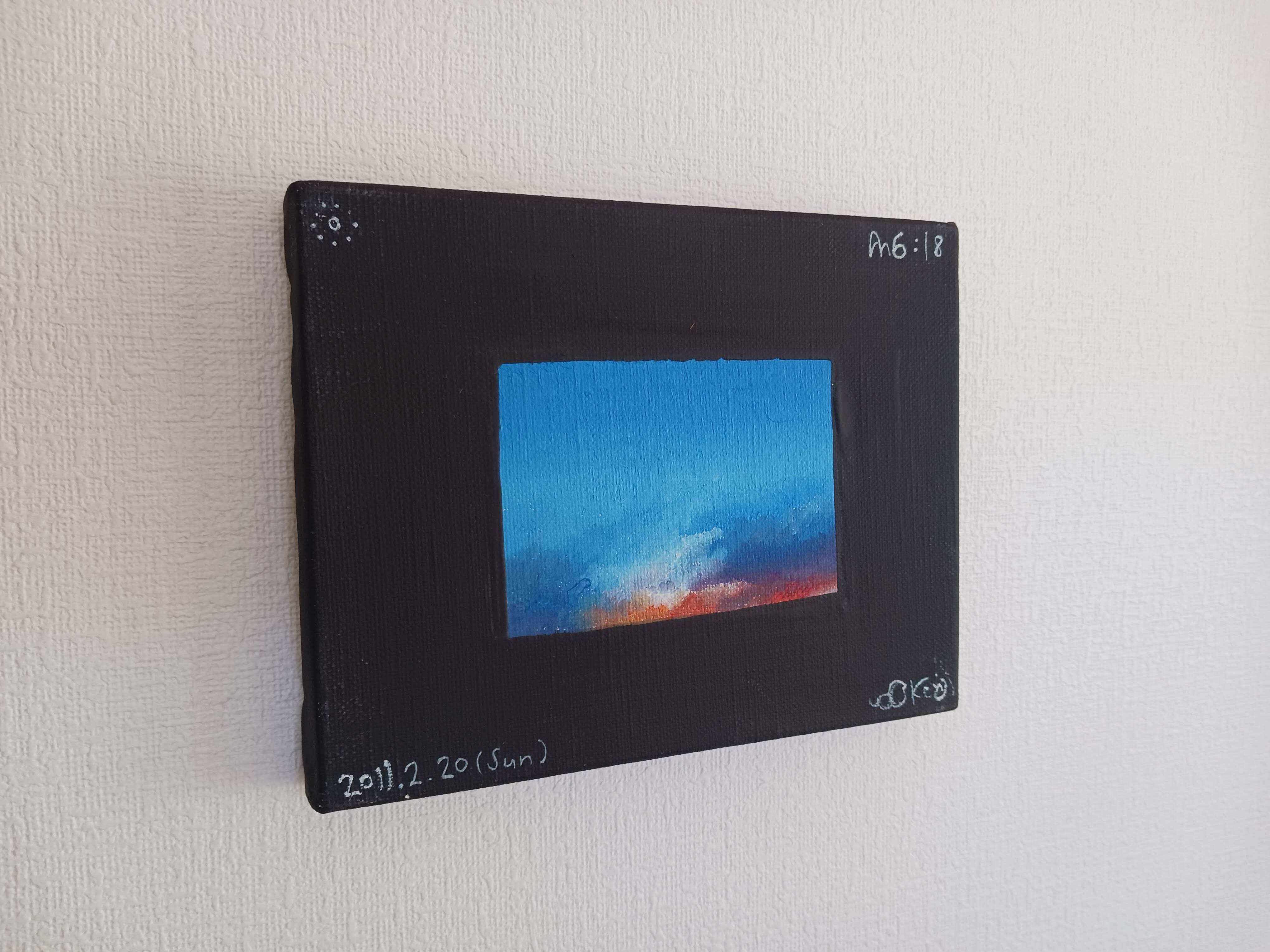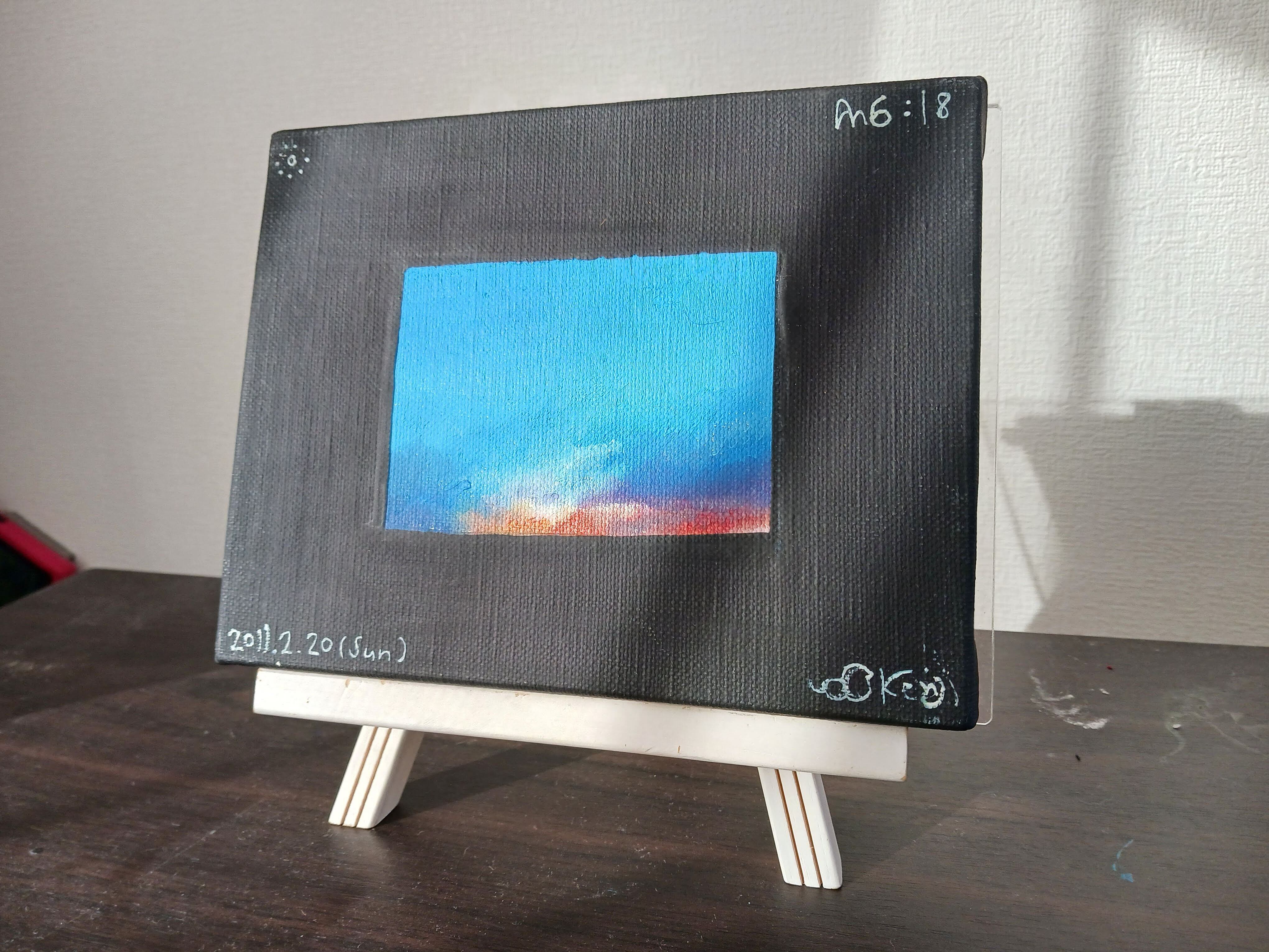 枠の色はアクリルジェッソ、中心の空は油絵具で描いています。