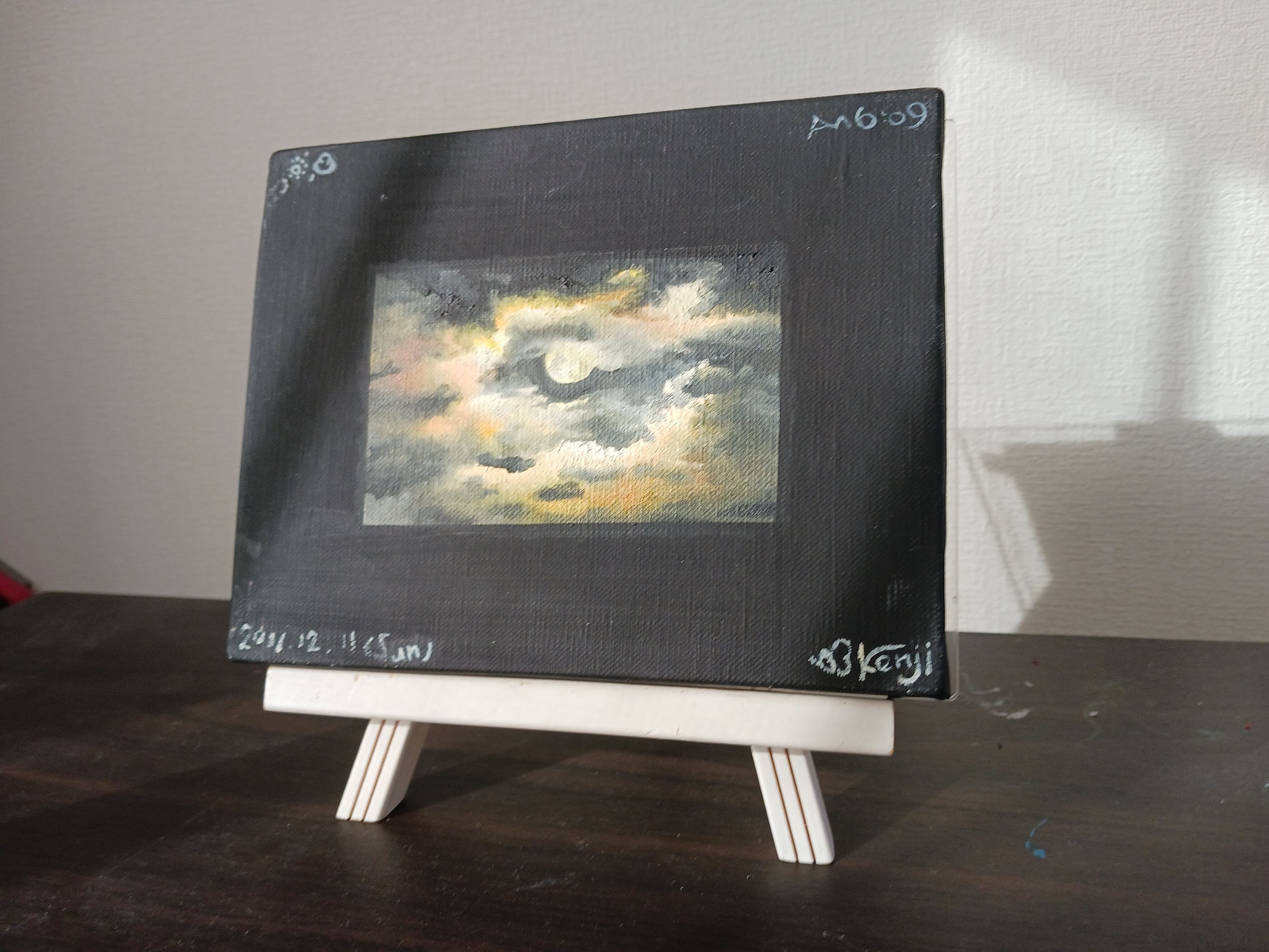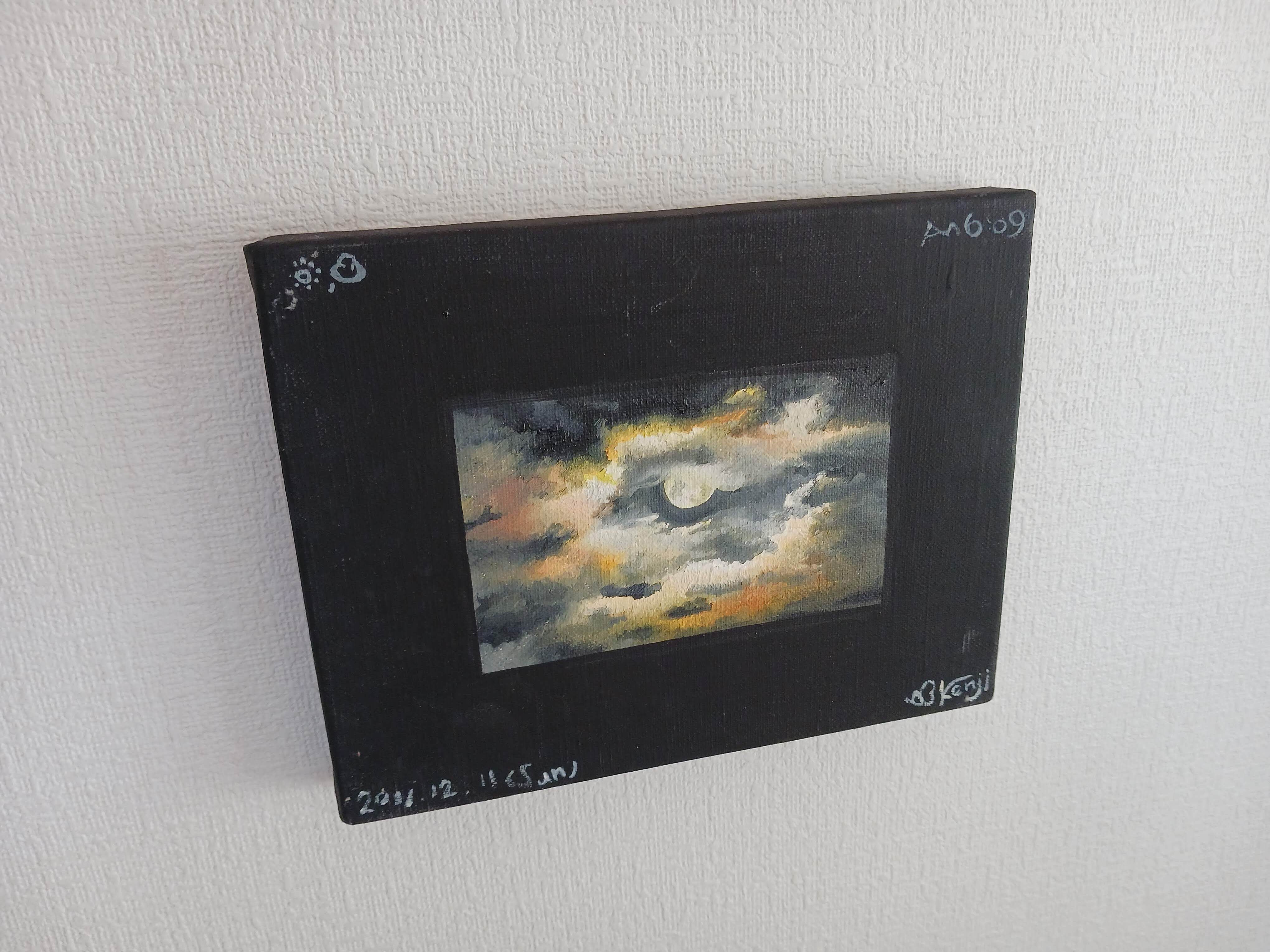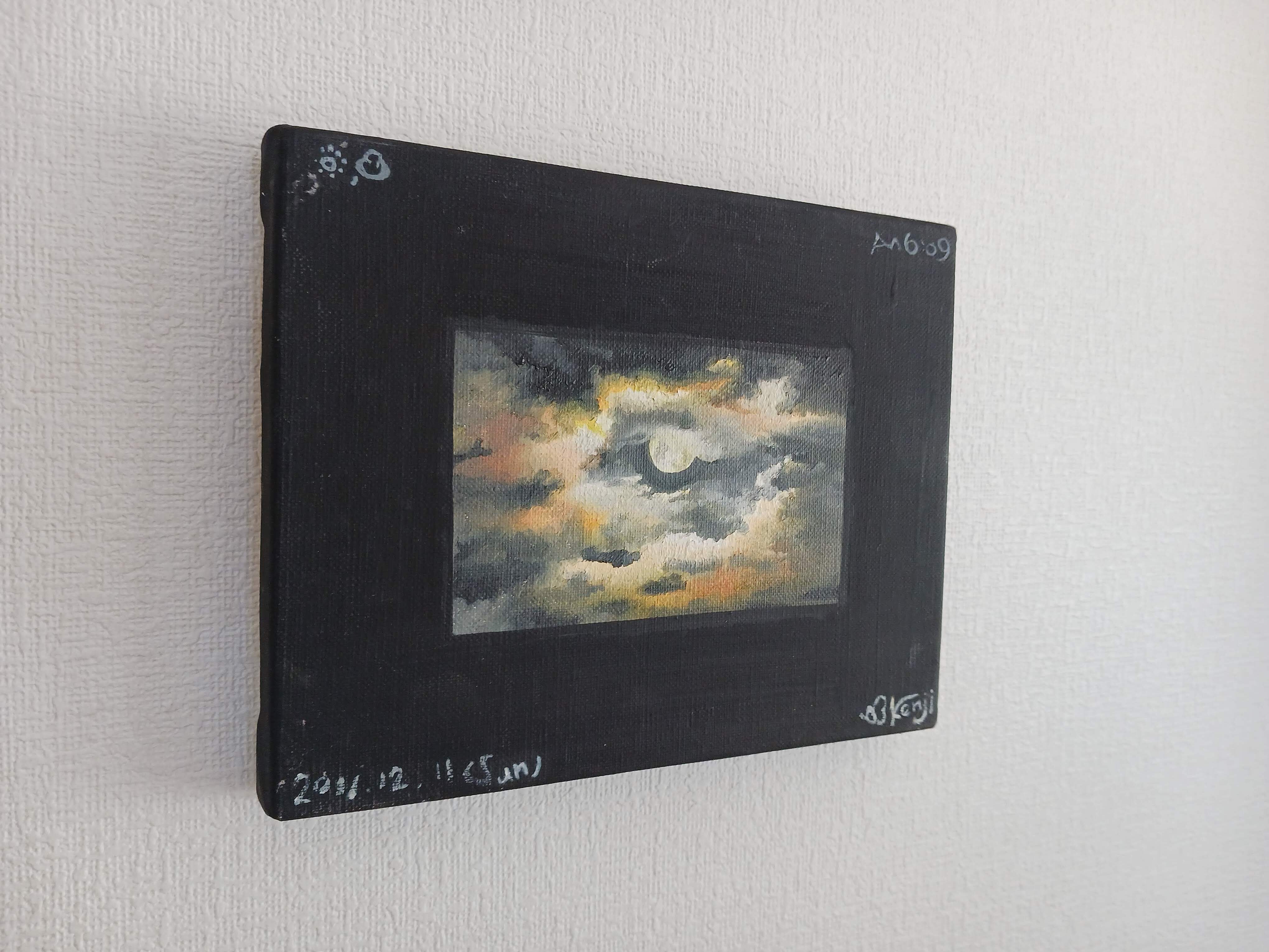 枠の色はアクリルジェッソ、中心の空は油絵具で描いています。