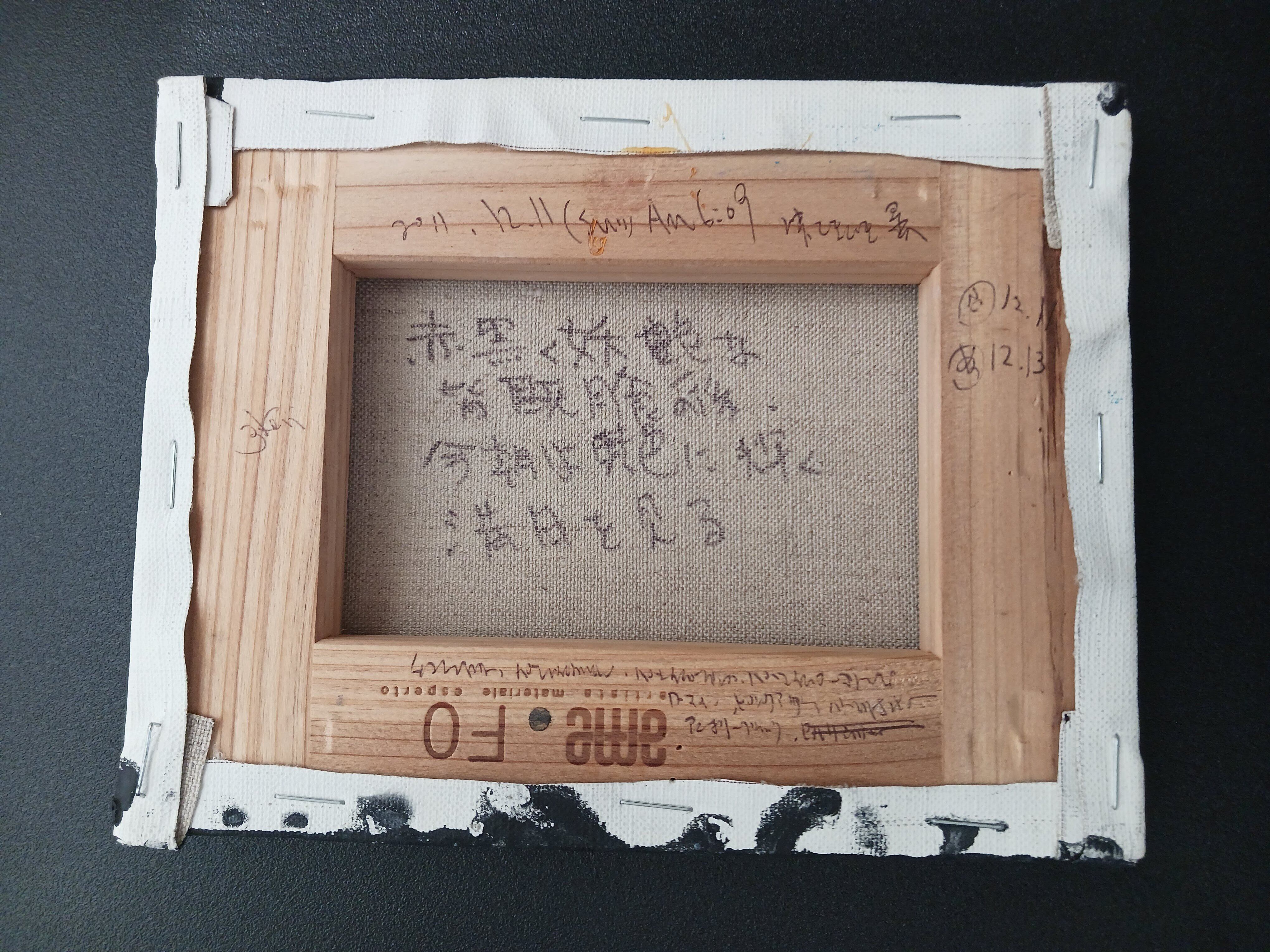 裏面には、その日の日記と制作日と使用絵具が書いていますが、一部書き忘れもあります。画鋲が付いた作品もありますが、針は抜いています。