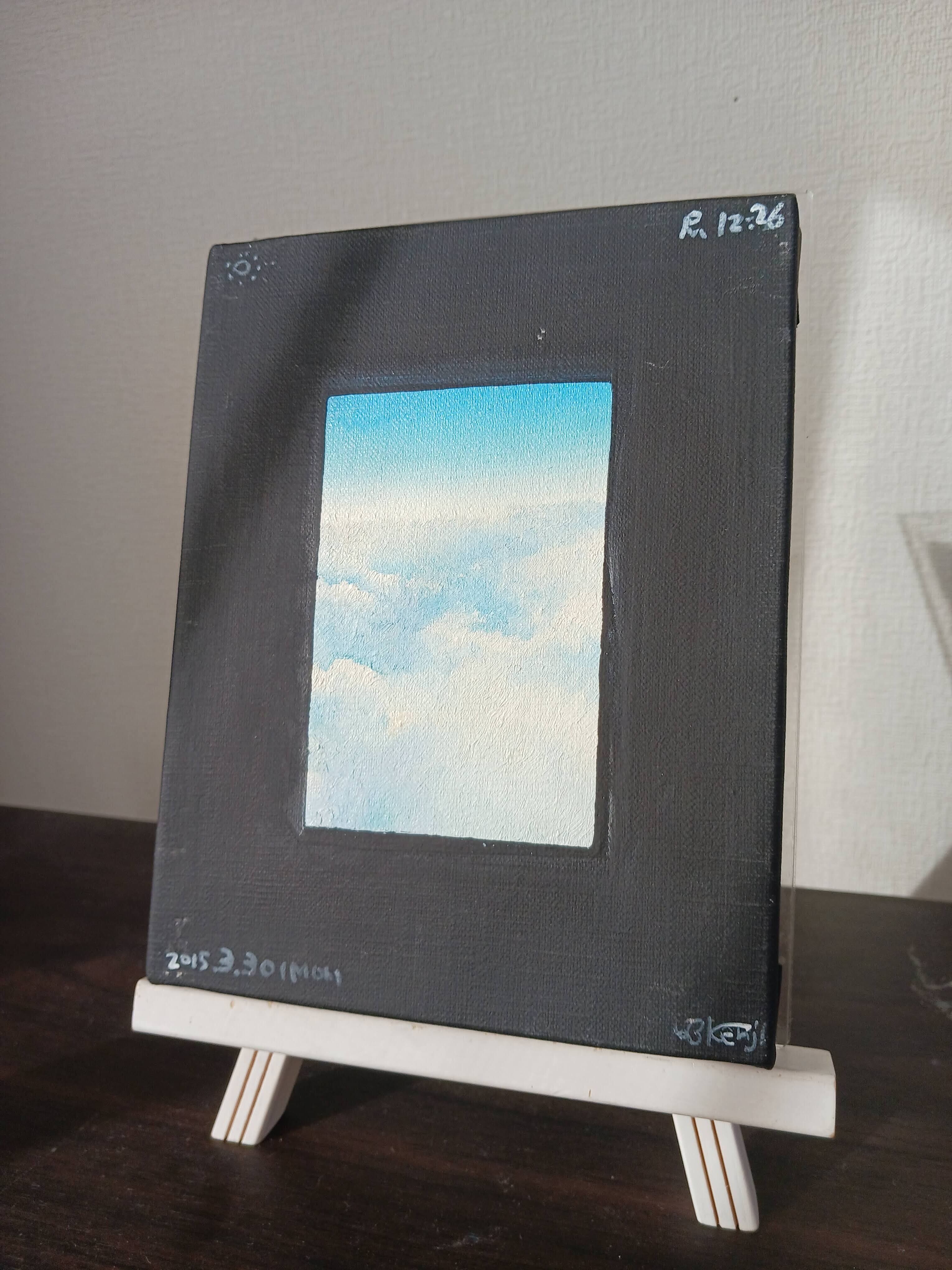 枠の色はアクリルジェッソ、中心の空は油絵具で描いています。