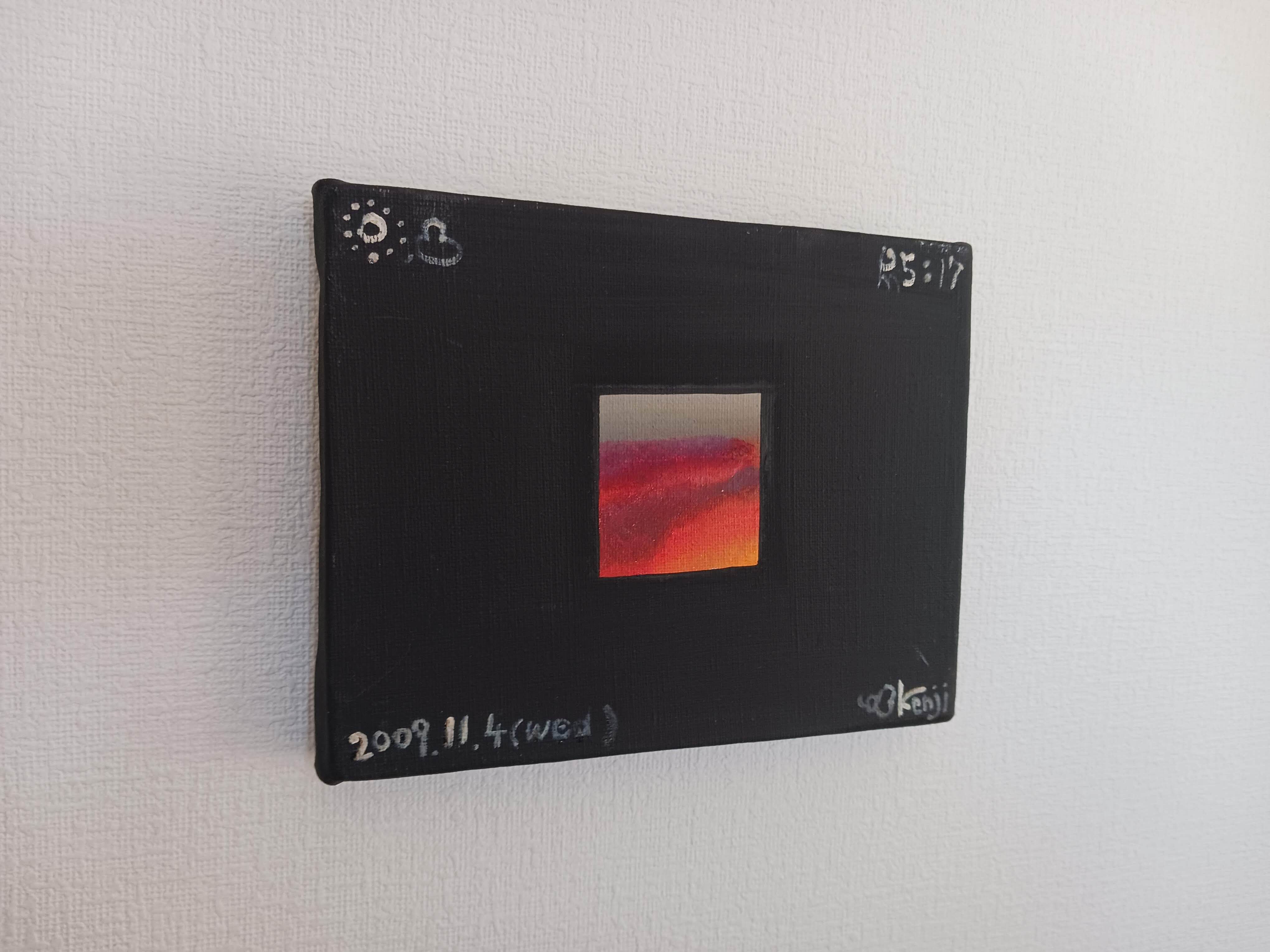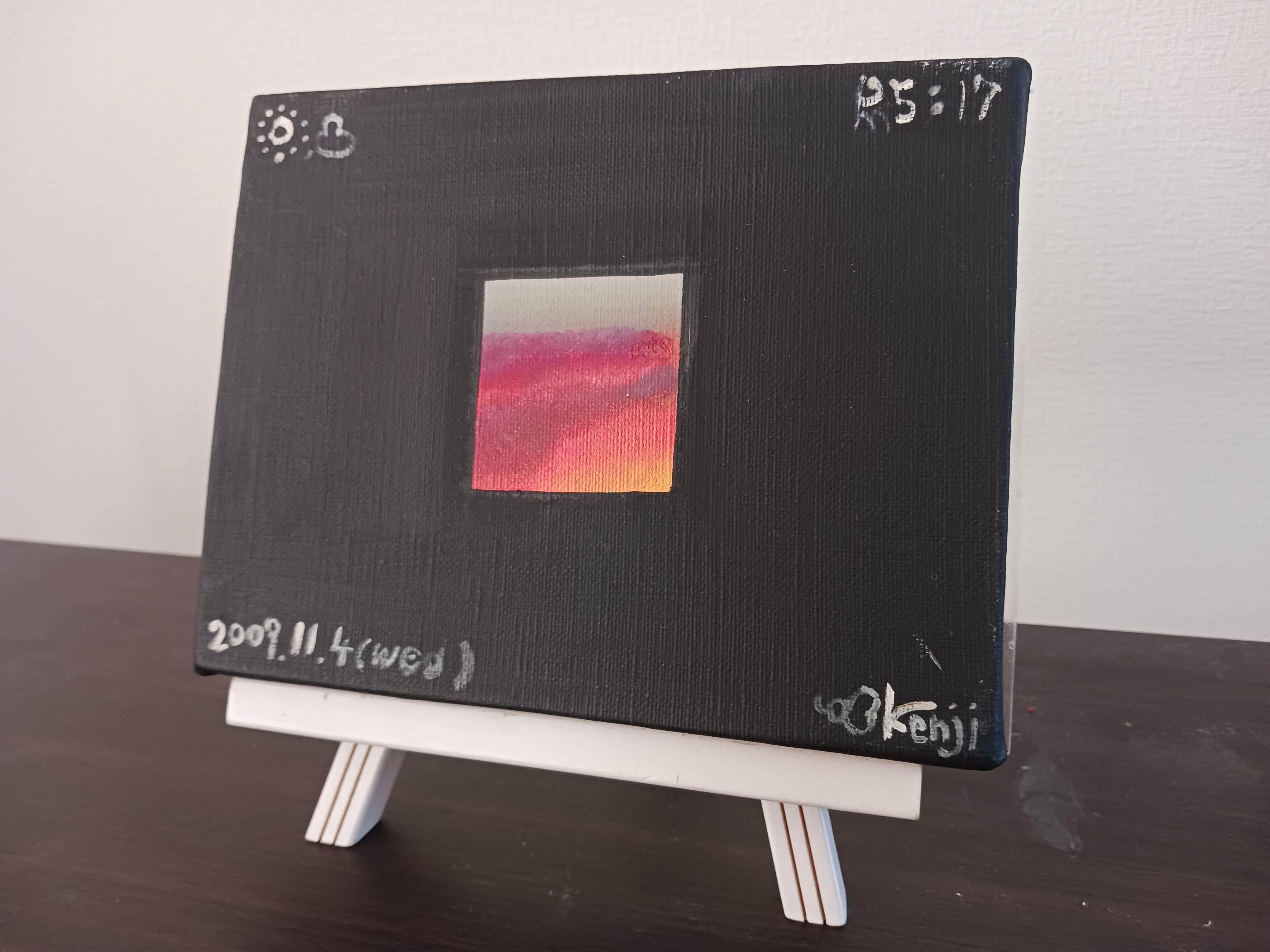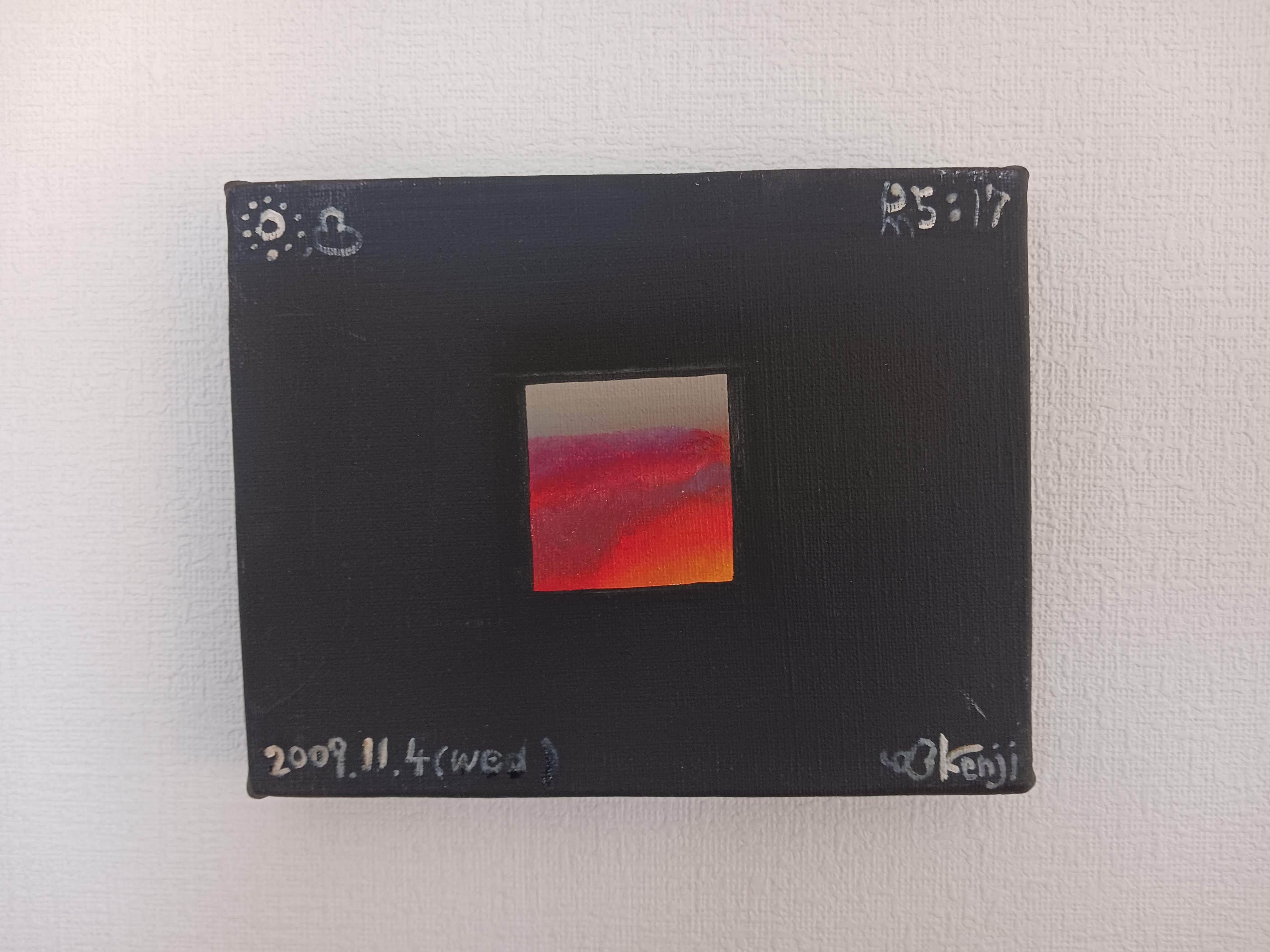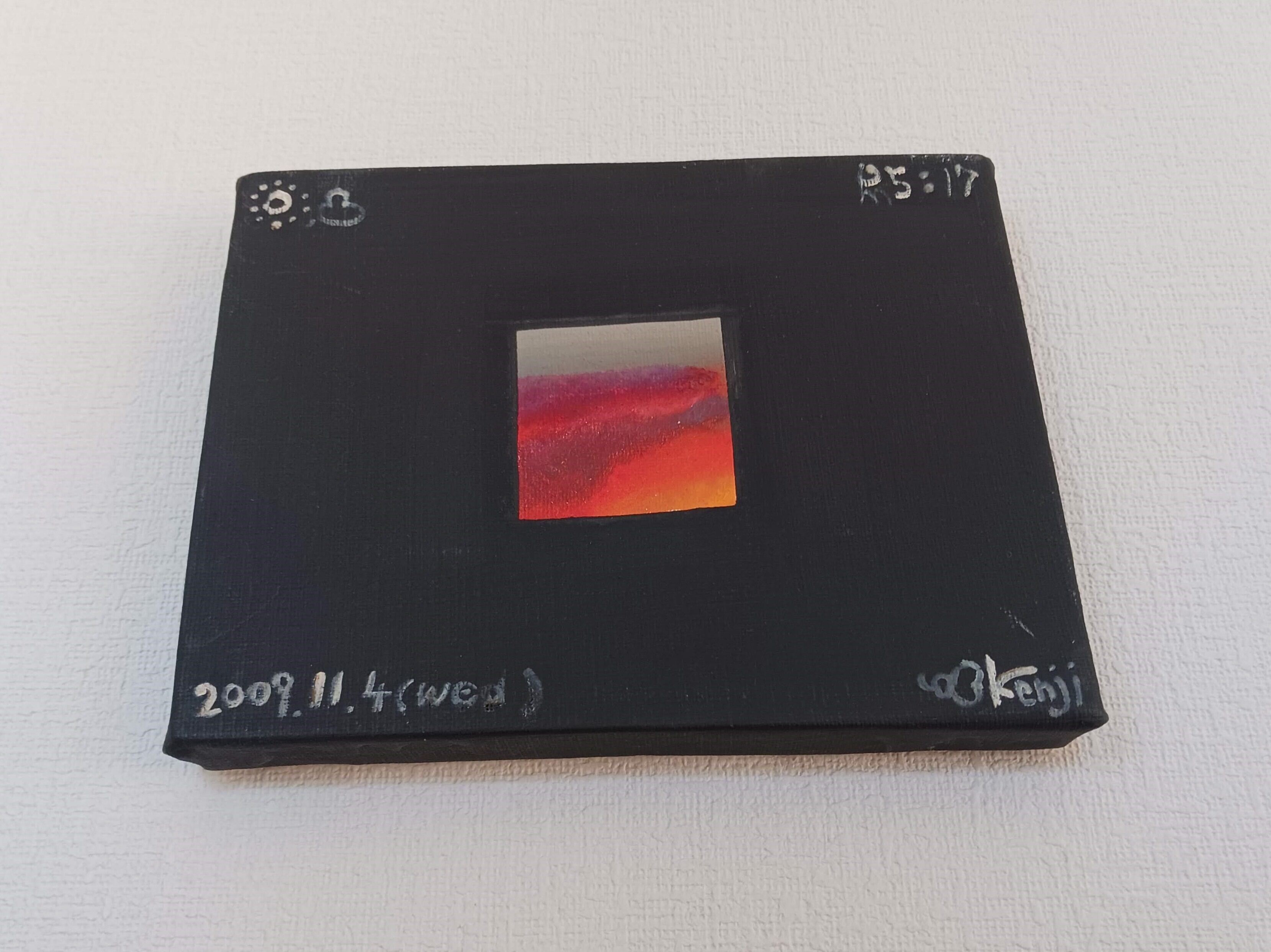 作品の四隅に、日付と天気と時間とサインを入れています。
