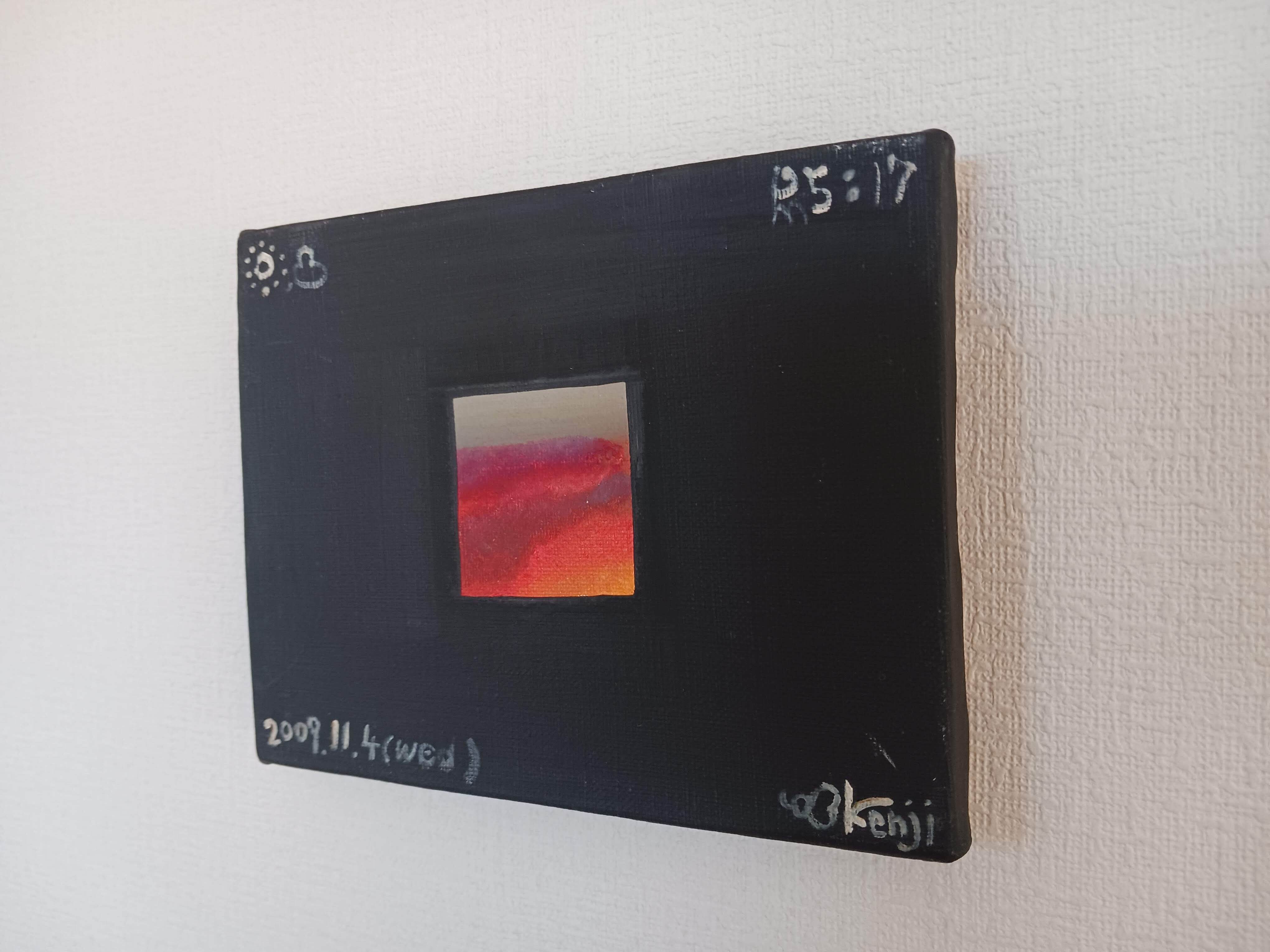 枠の色はアクリルジェッソ、中心の空は油絵具で描いています。