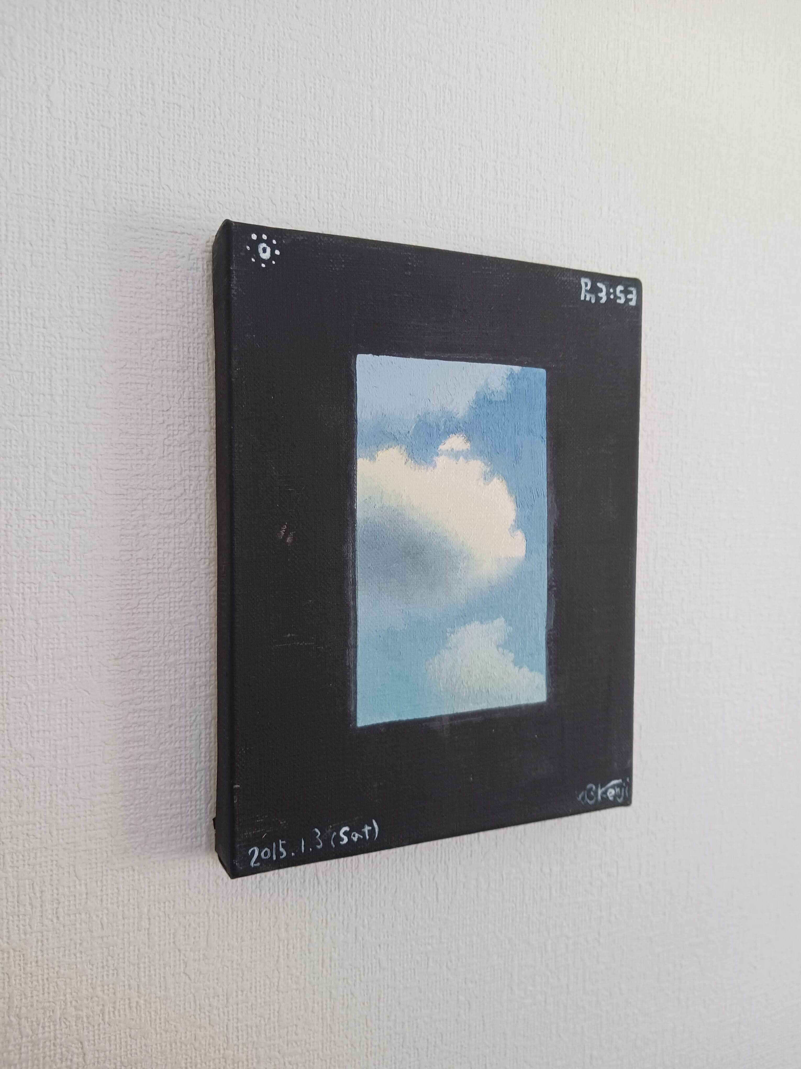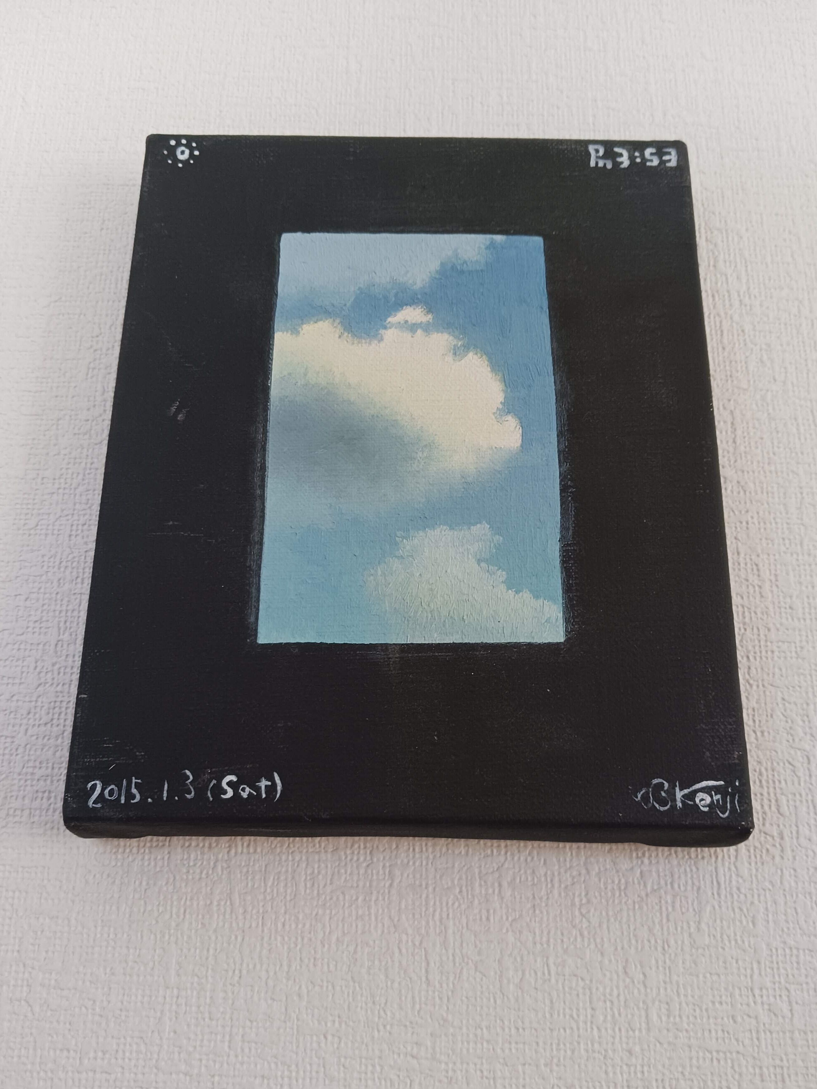 枠の色はアクリルジェッソ、中心の空は油絵具で描いています。