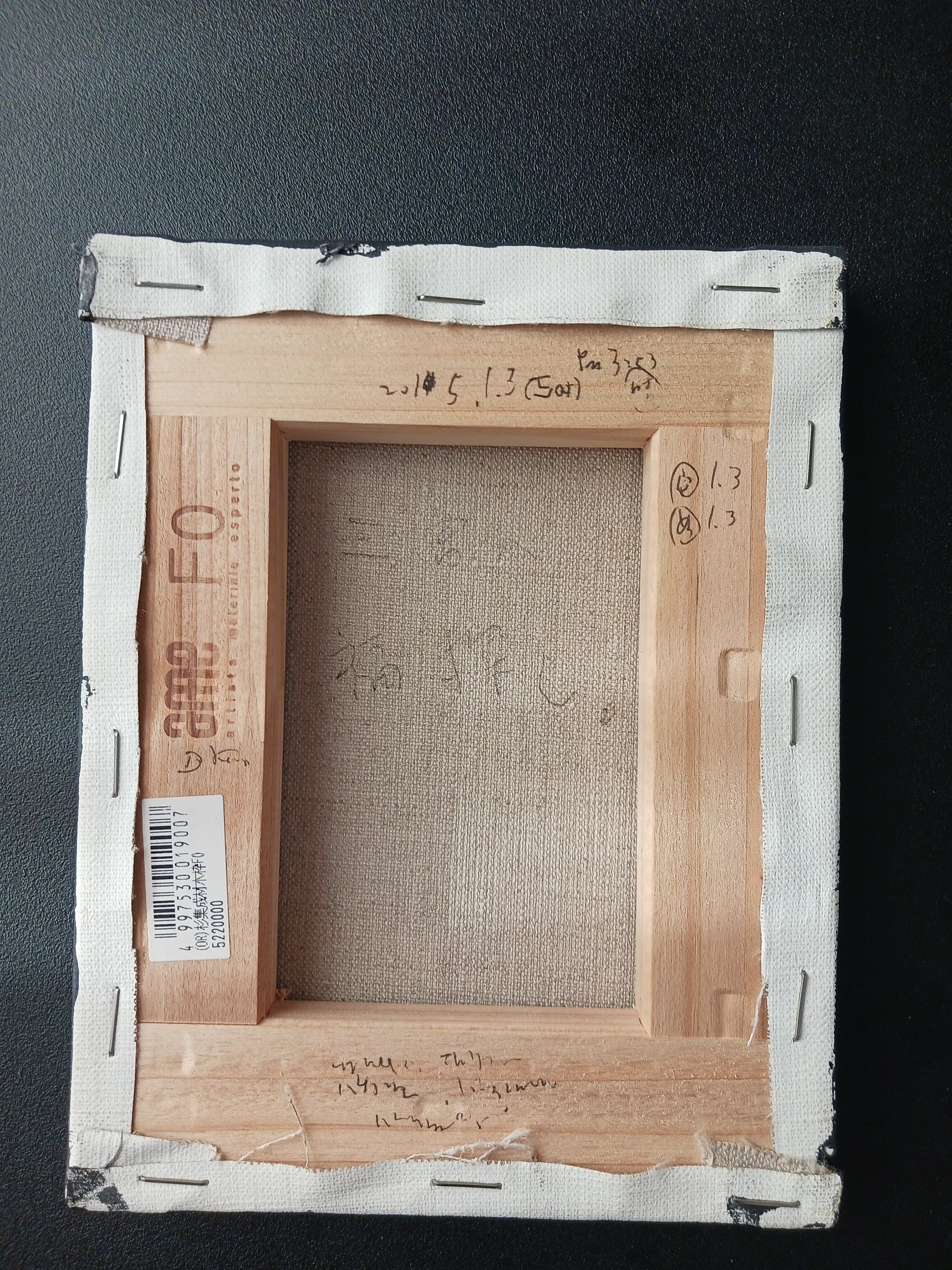 裏面には、その日の日記と制作日と使用絵具が書いていますが、一部書き忘れもあります。画鋲が付いた作品もありますが、針は抜いています。