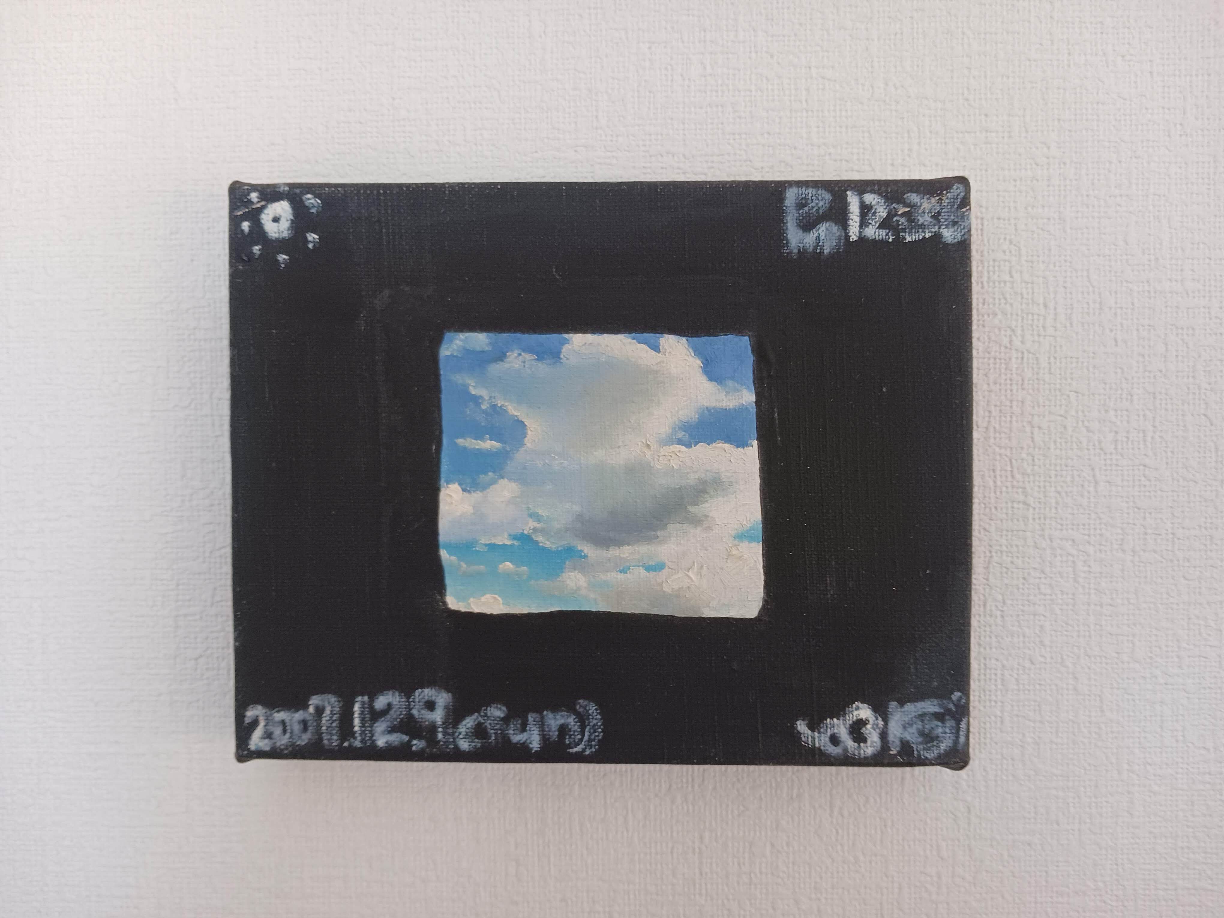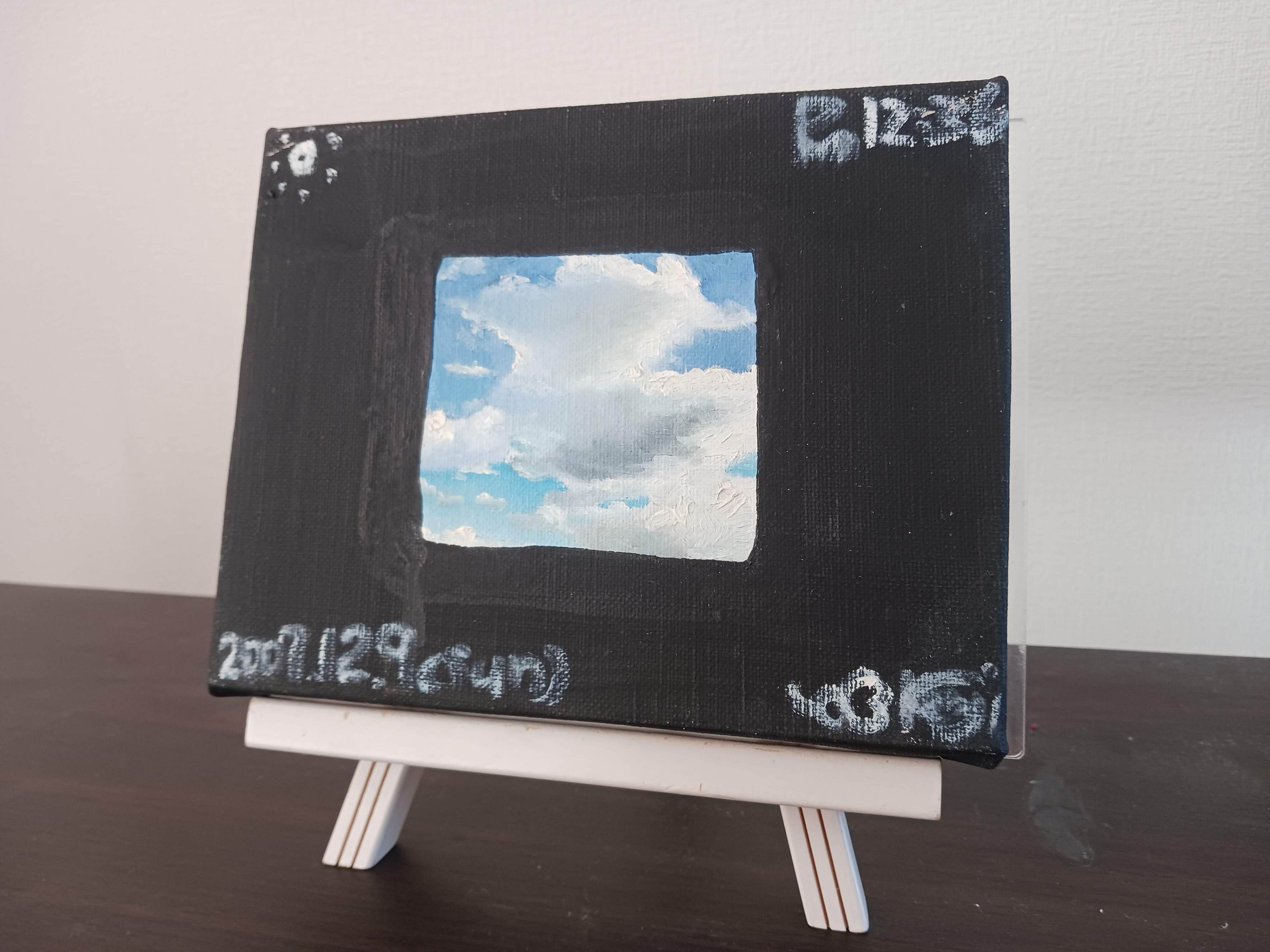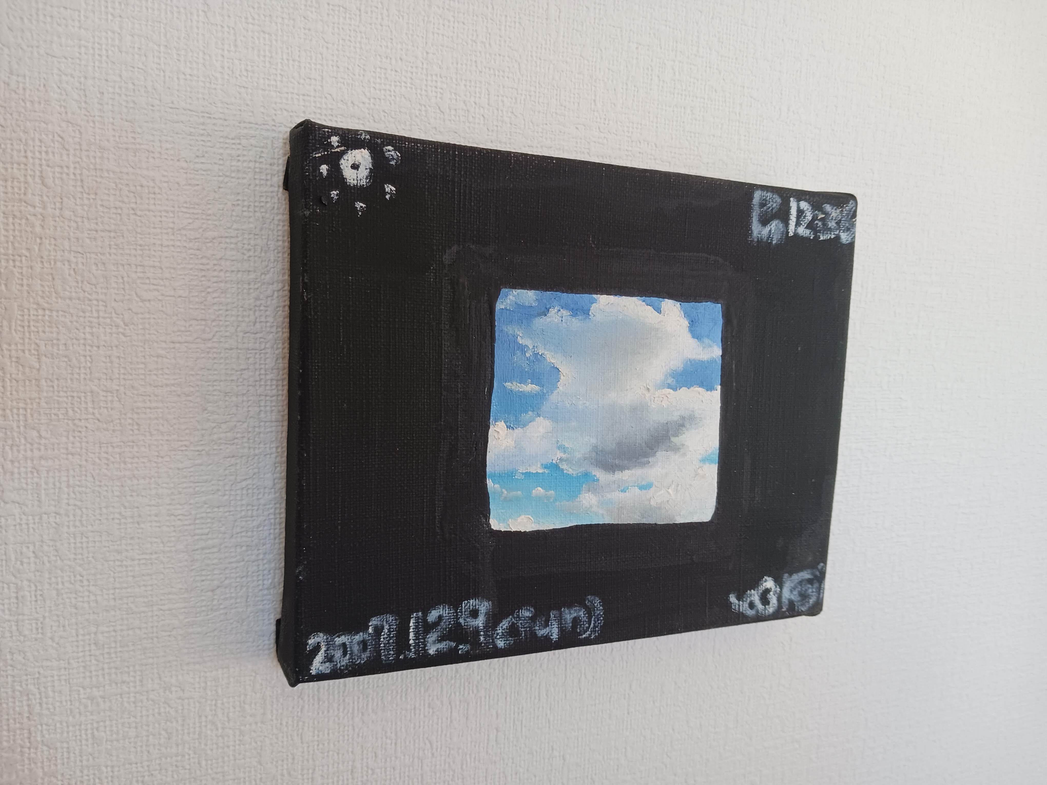枠の色はアクリルジェッソ、中心の空は油絵具で描いています。