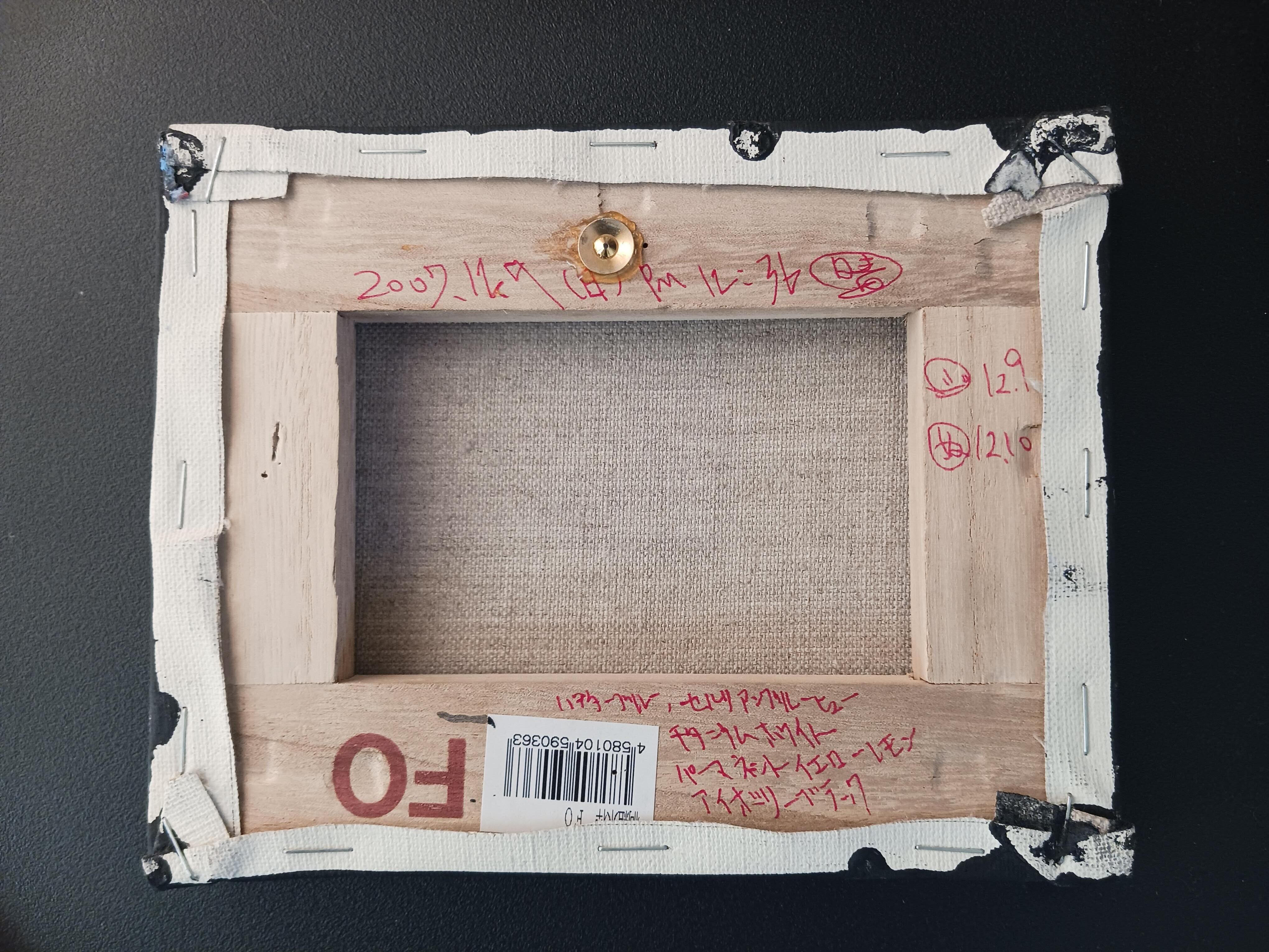 裏面には、その日の日記と制作日と使用絵具が書いていますが、一部書き忘れもあります。画鋲が付いた作品もありますが、針は抜いています。