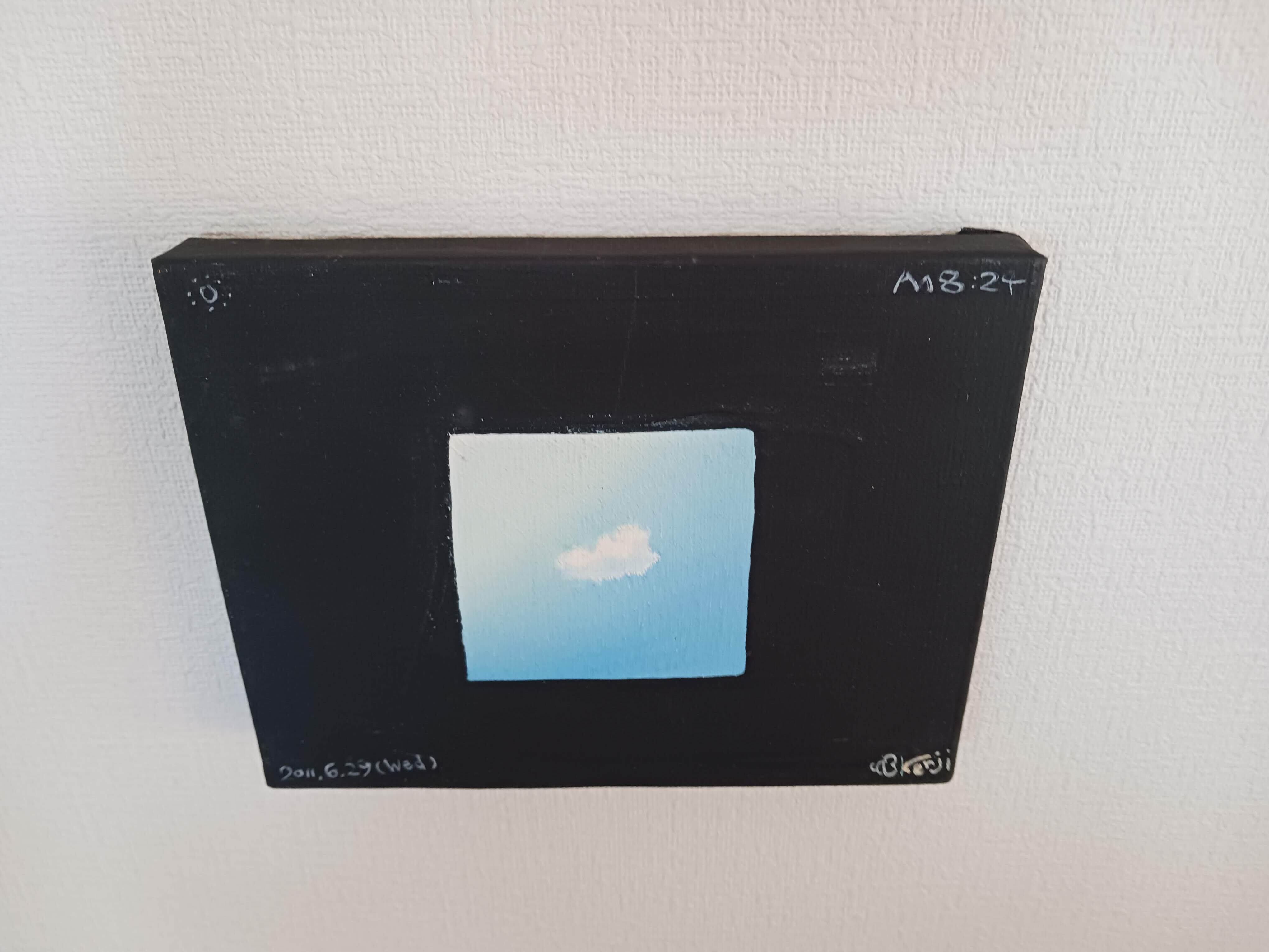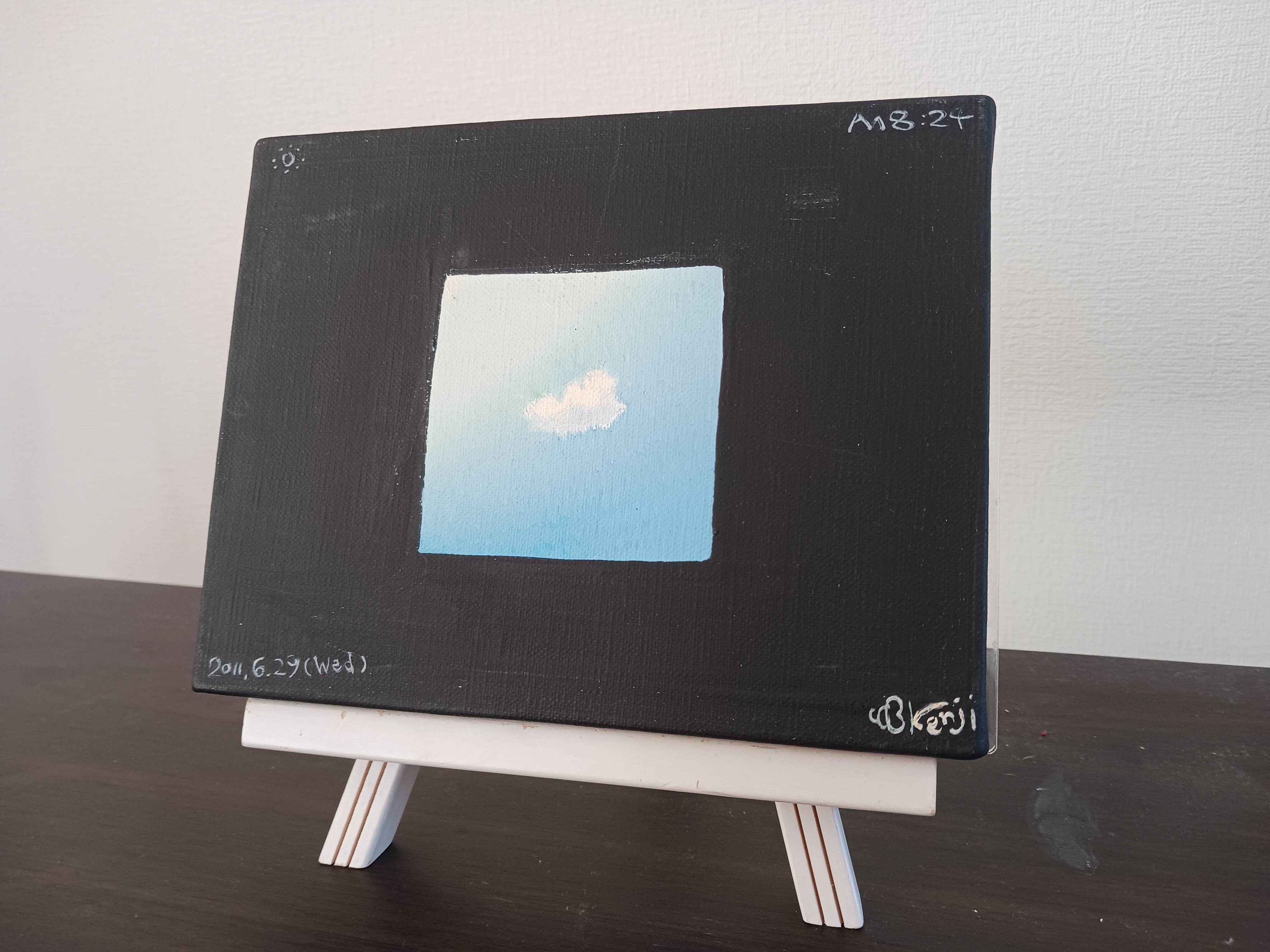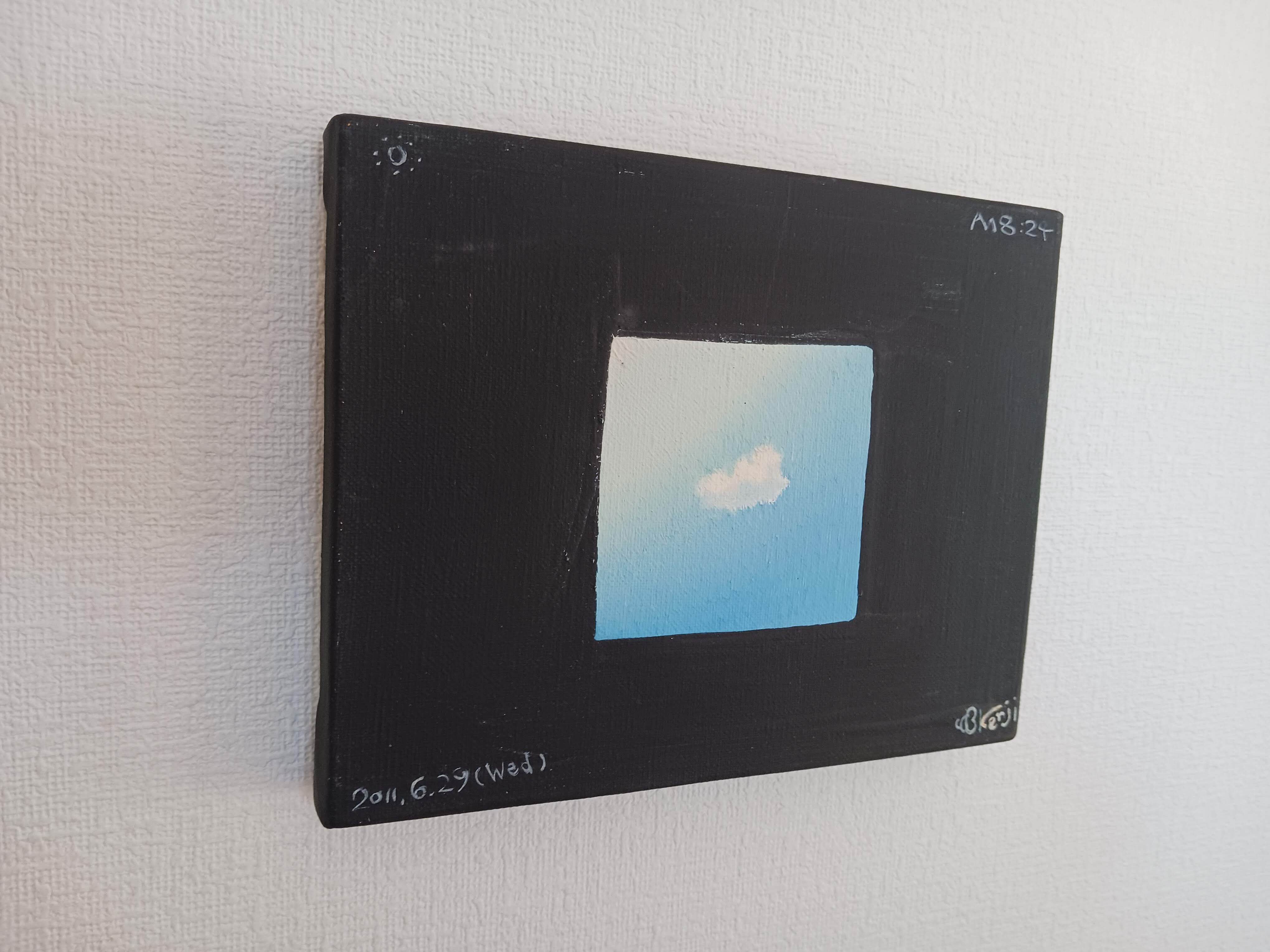 枠の色はアクリルジェッソ、中心の空は油絵具で描いています。