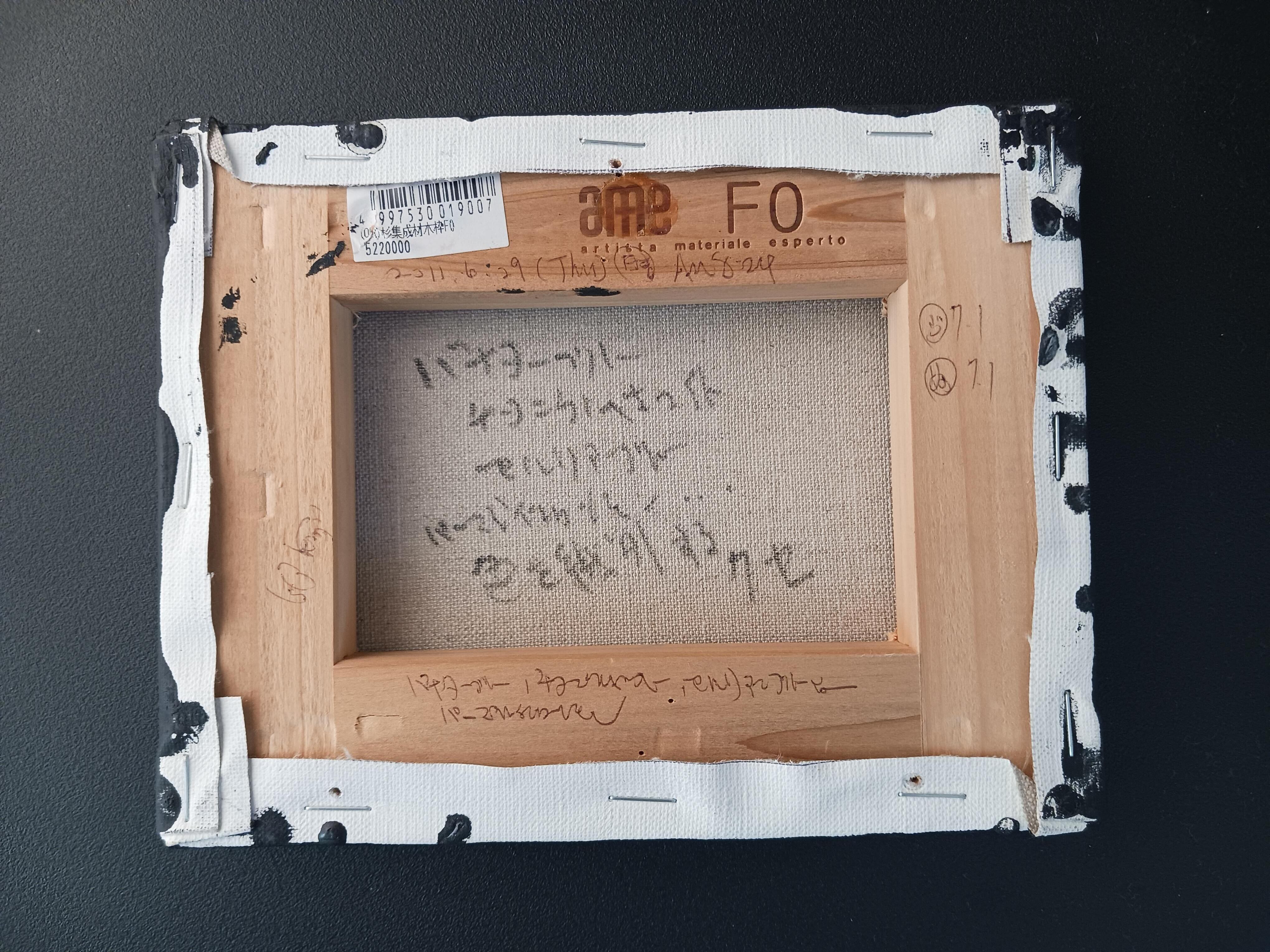 裏面には、その日の日記と制作日と使用絵具が書いていますが、一部書き忘れもあります。画鋲が付いた作品もありますが、針は抜いています。