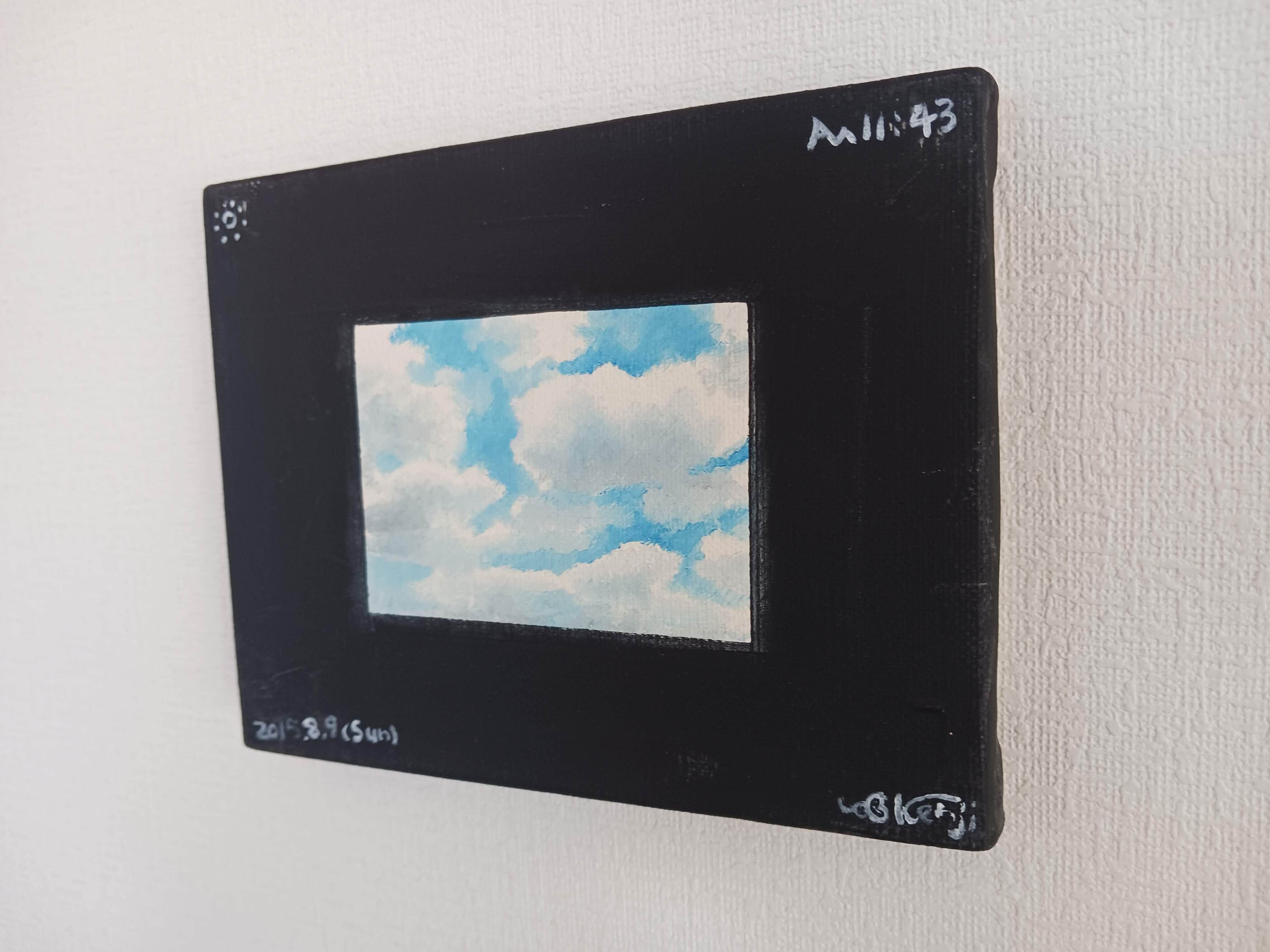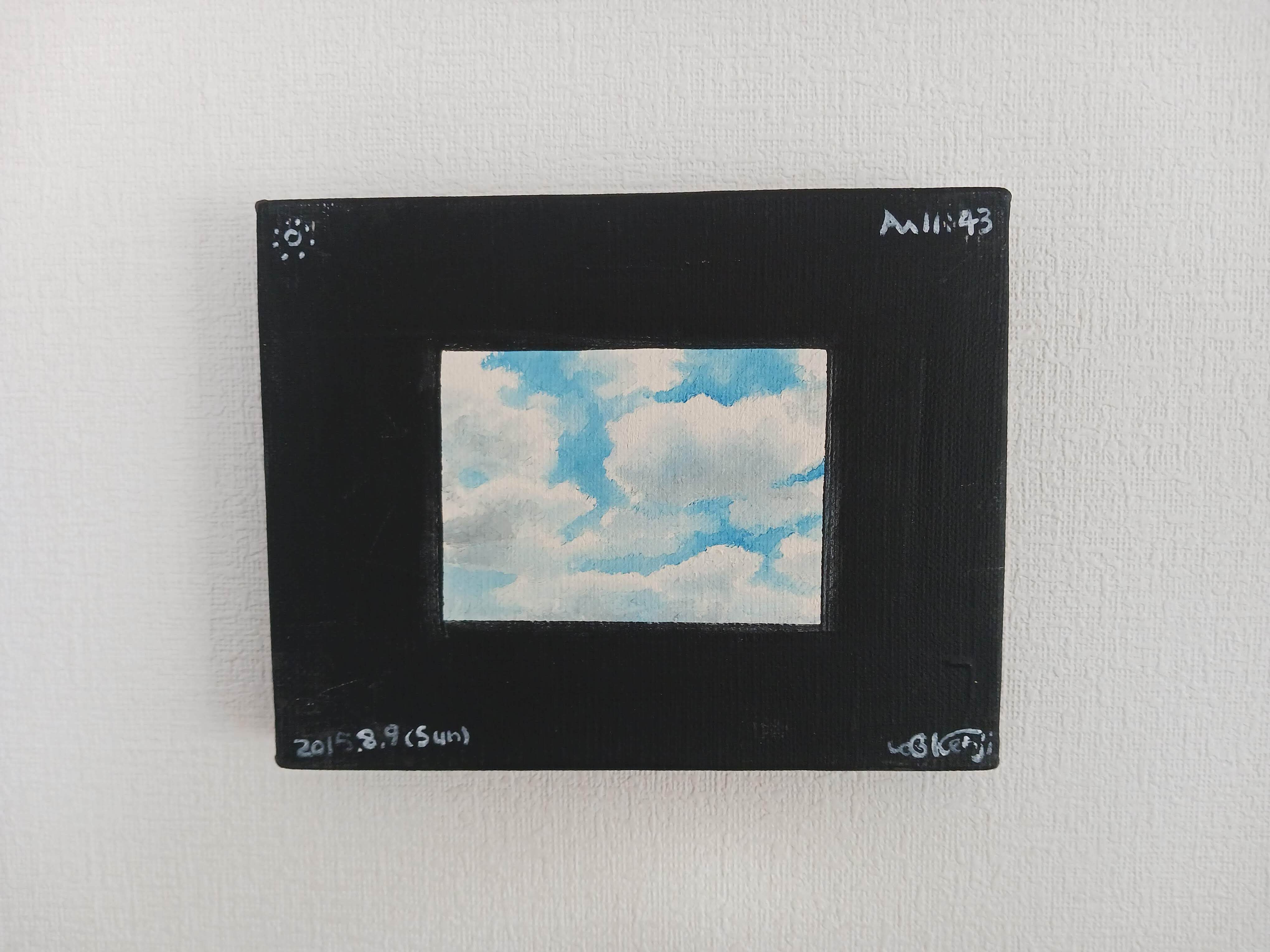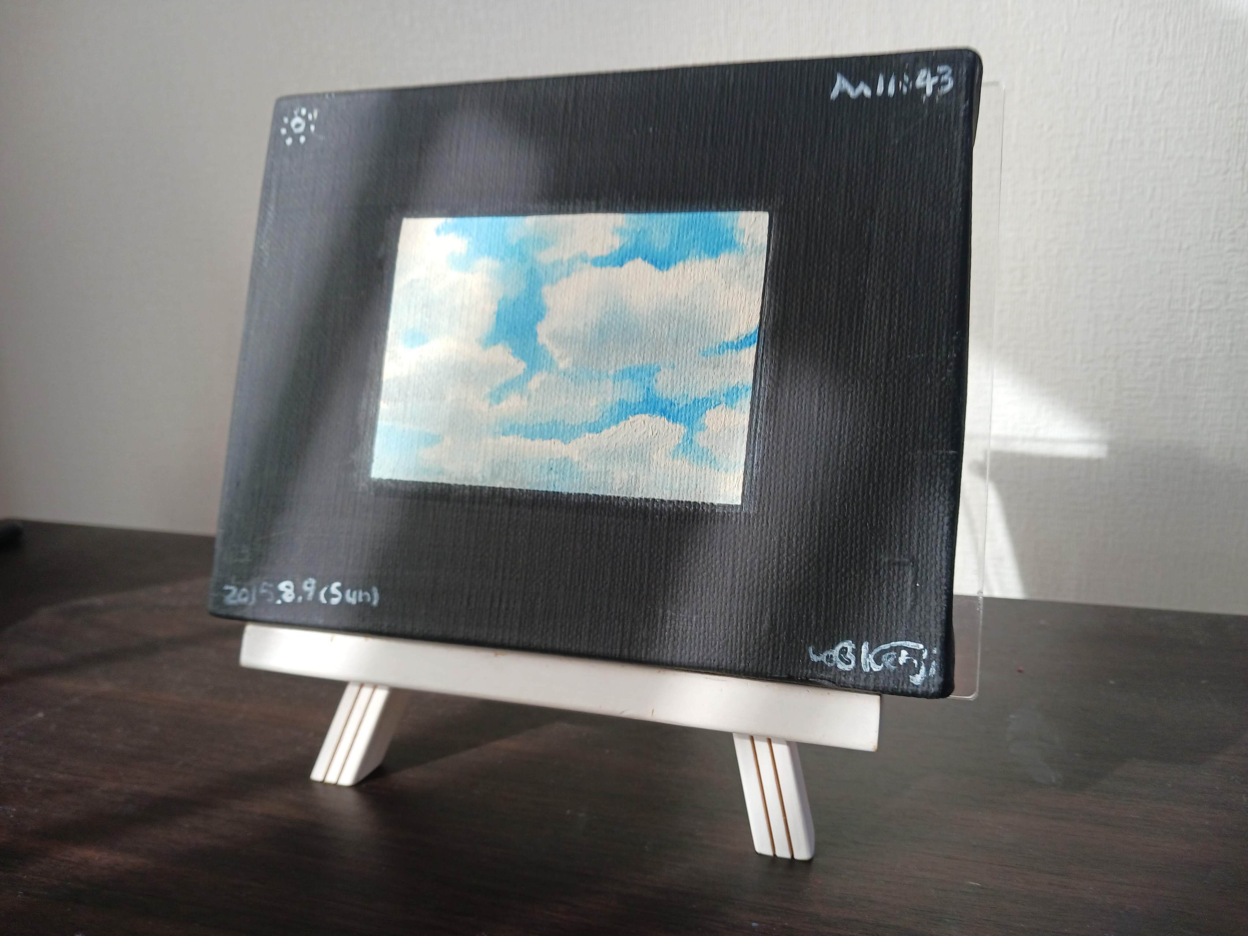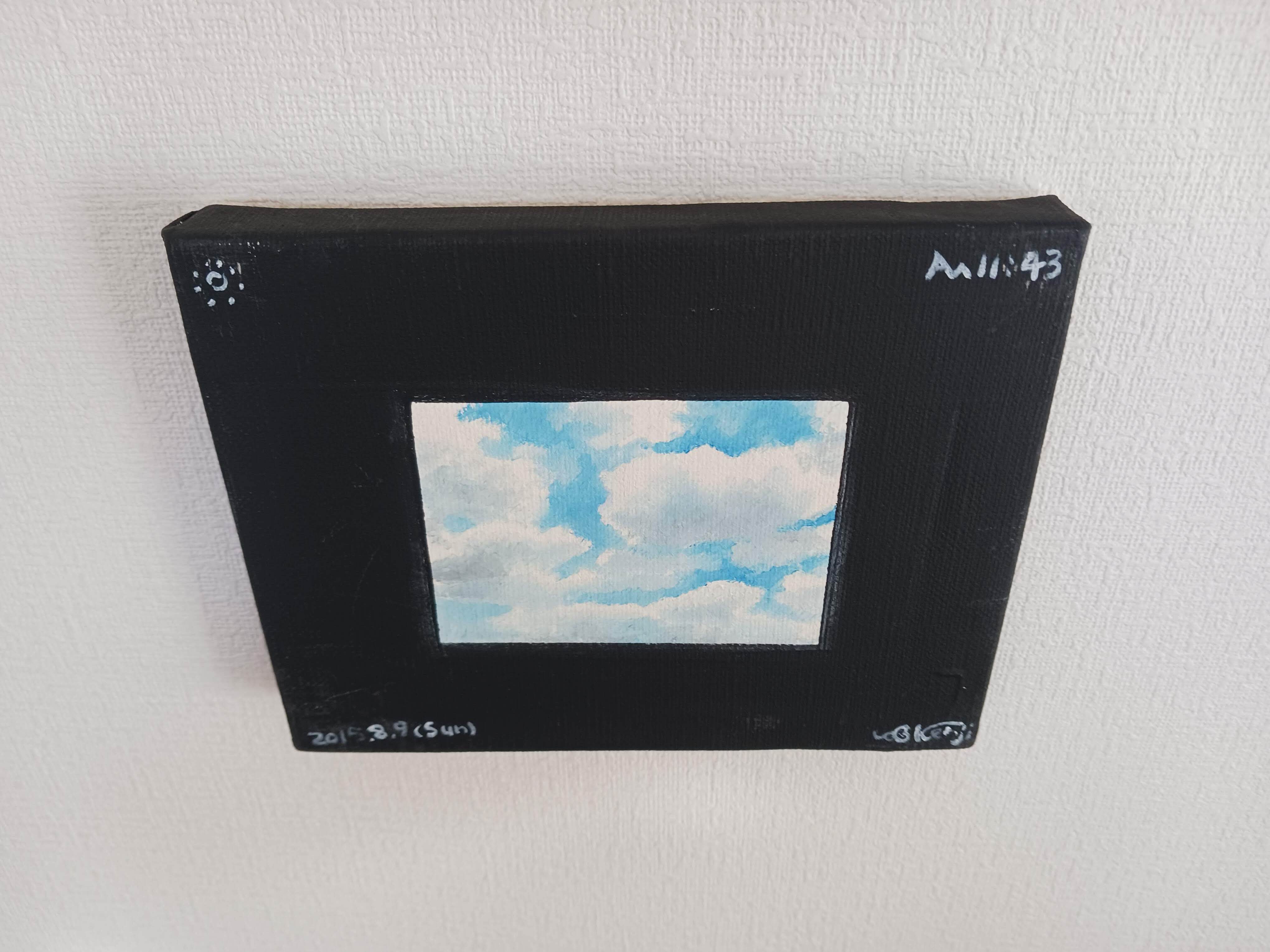 枠の色はアクリルジェッソ、中心の空は油絵具で描いています。