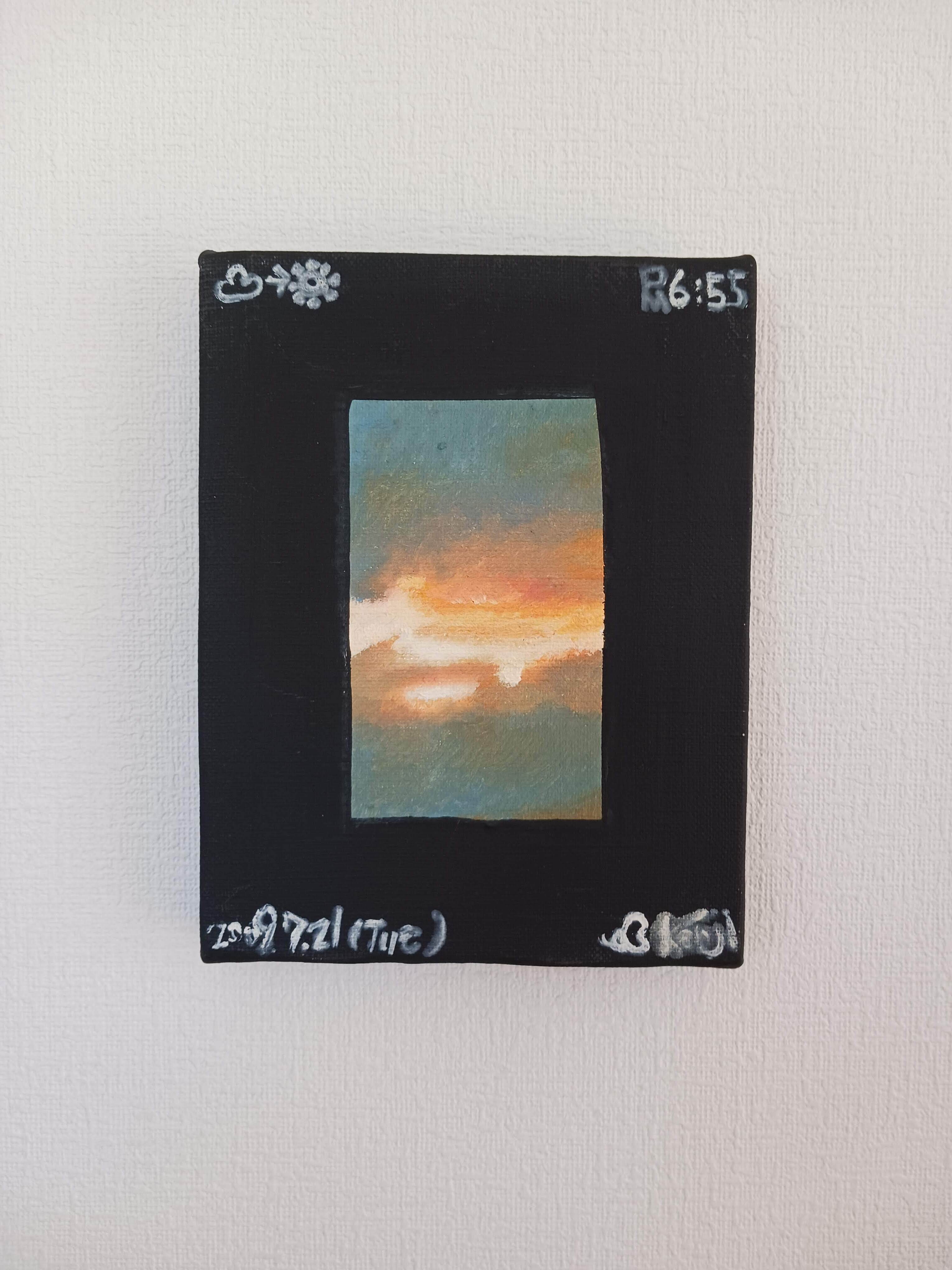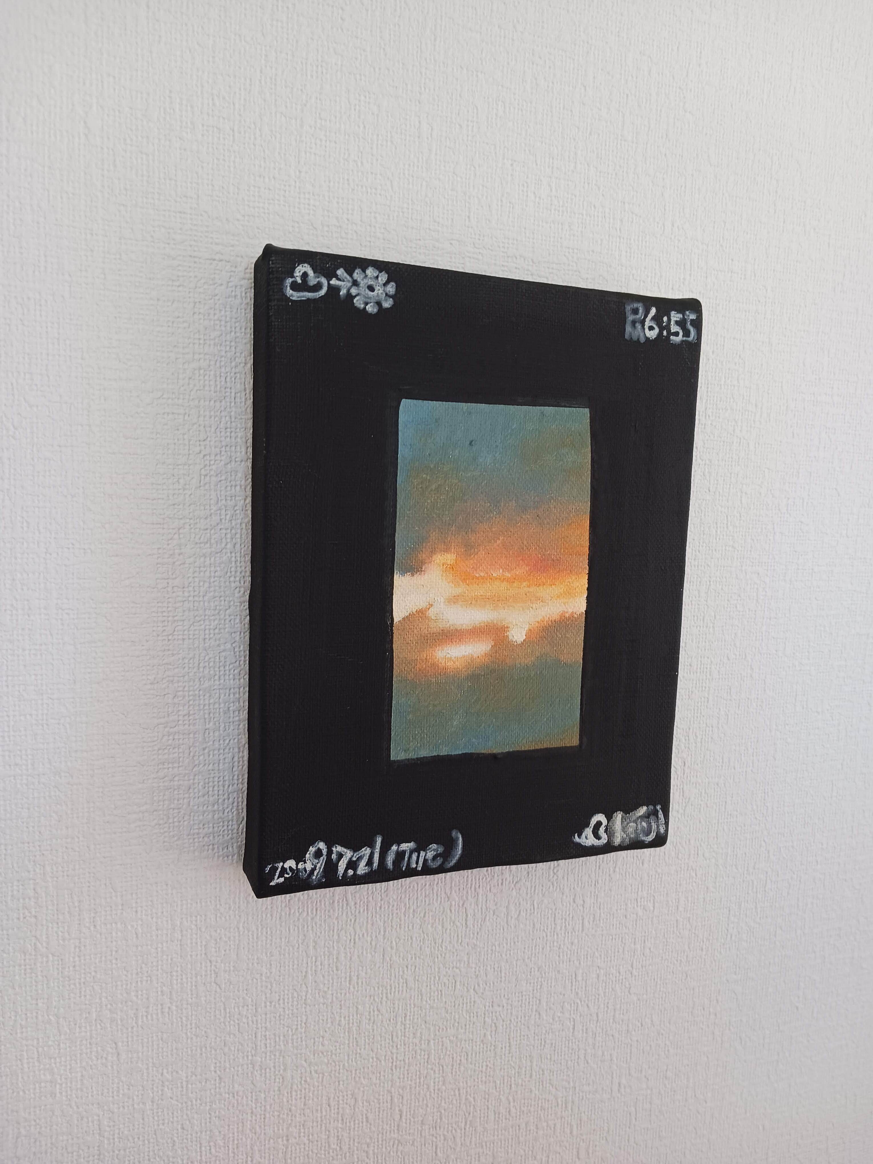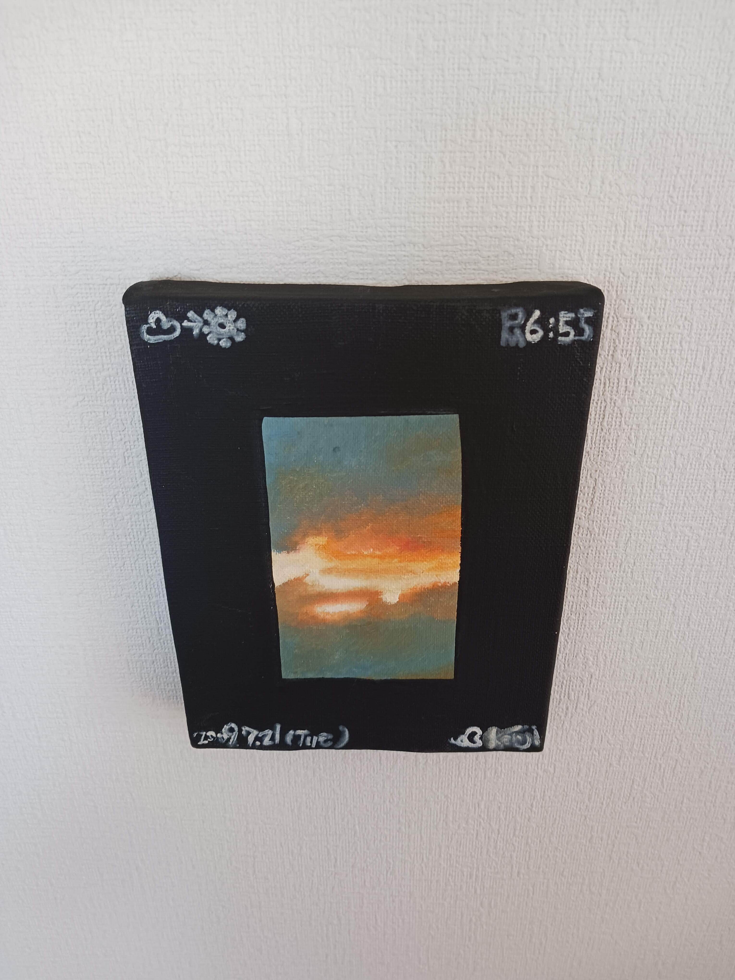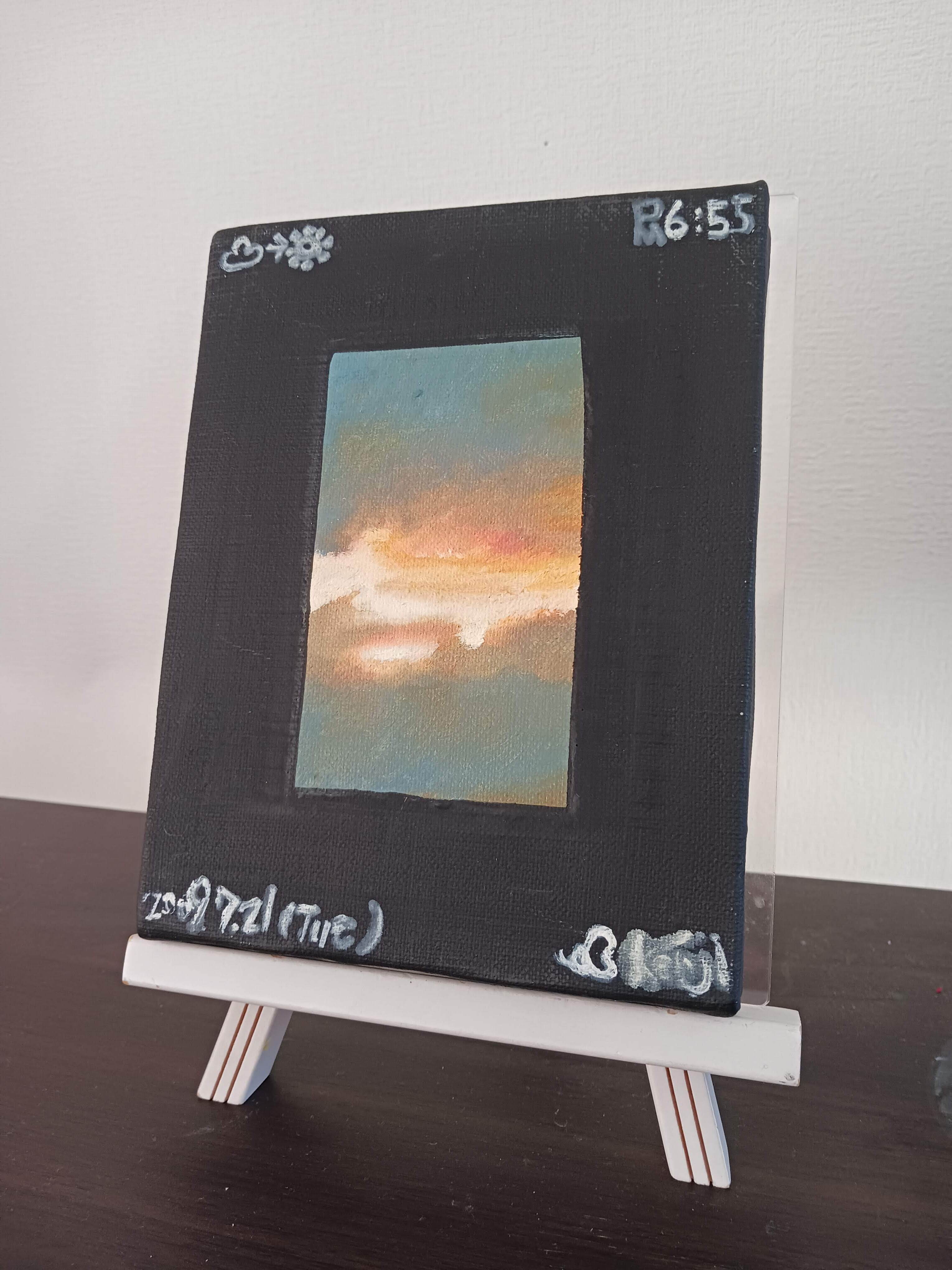 枠の色はアクリルジェッソ、中心の空は油絵具で描いています。