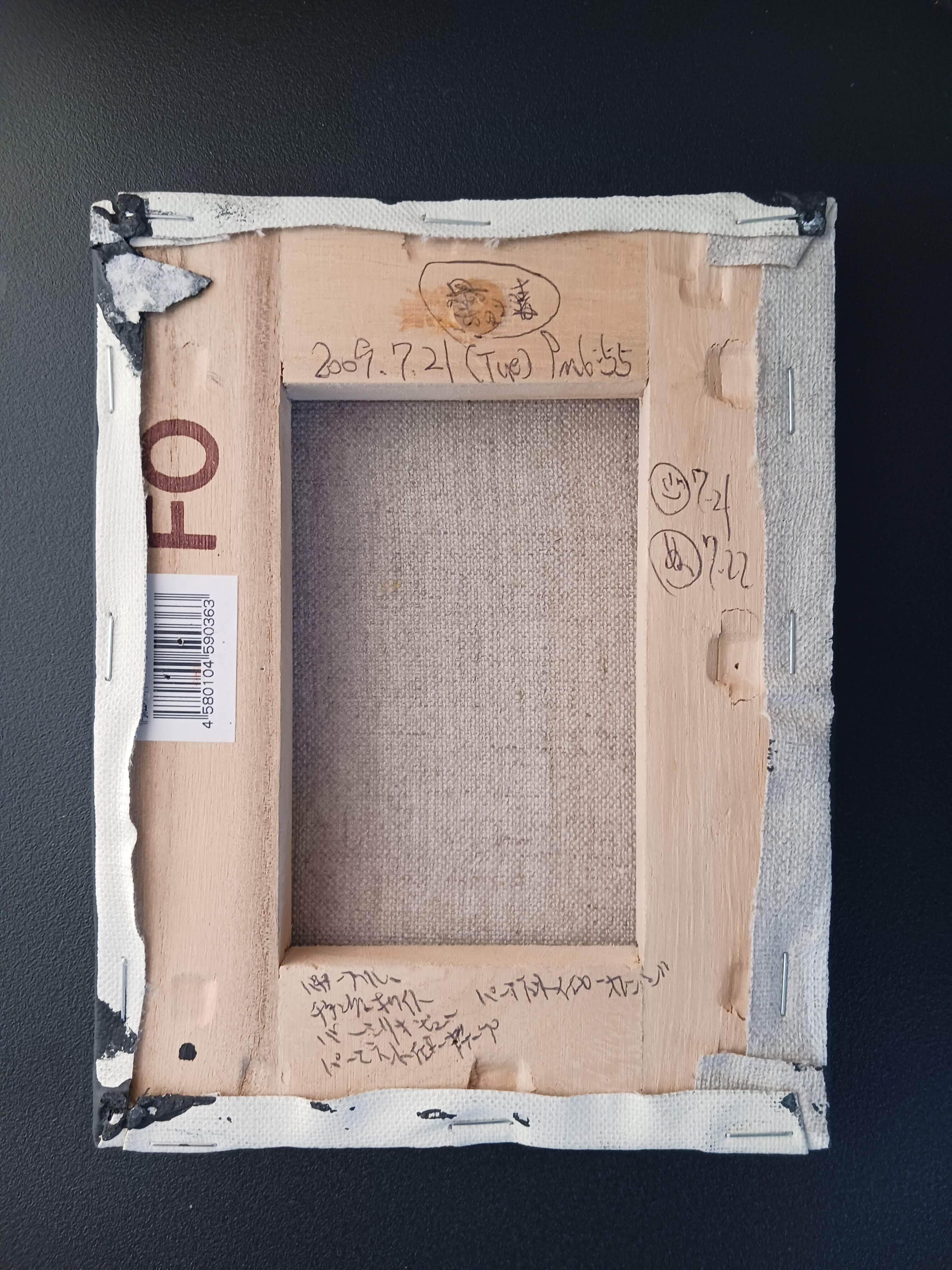 裏面には、その日の日記と制作日と使用絵具が書いていますが、一部書き忘れもあります。画鋲が付いた作品もありますが、針は抜いています。