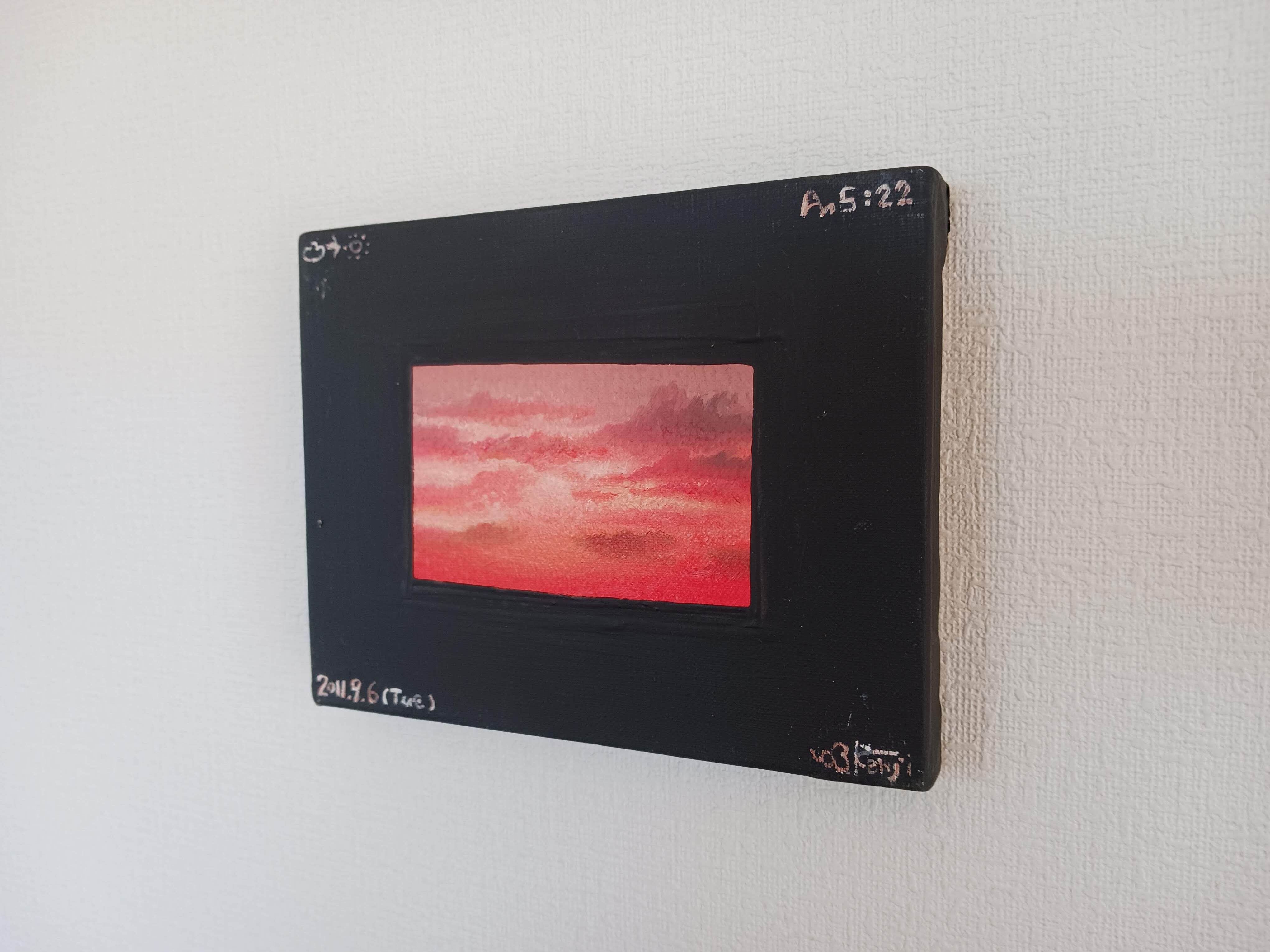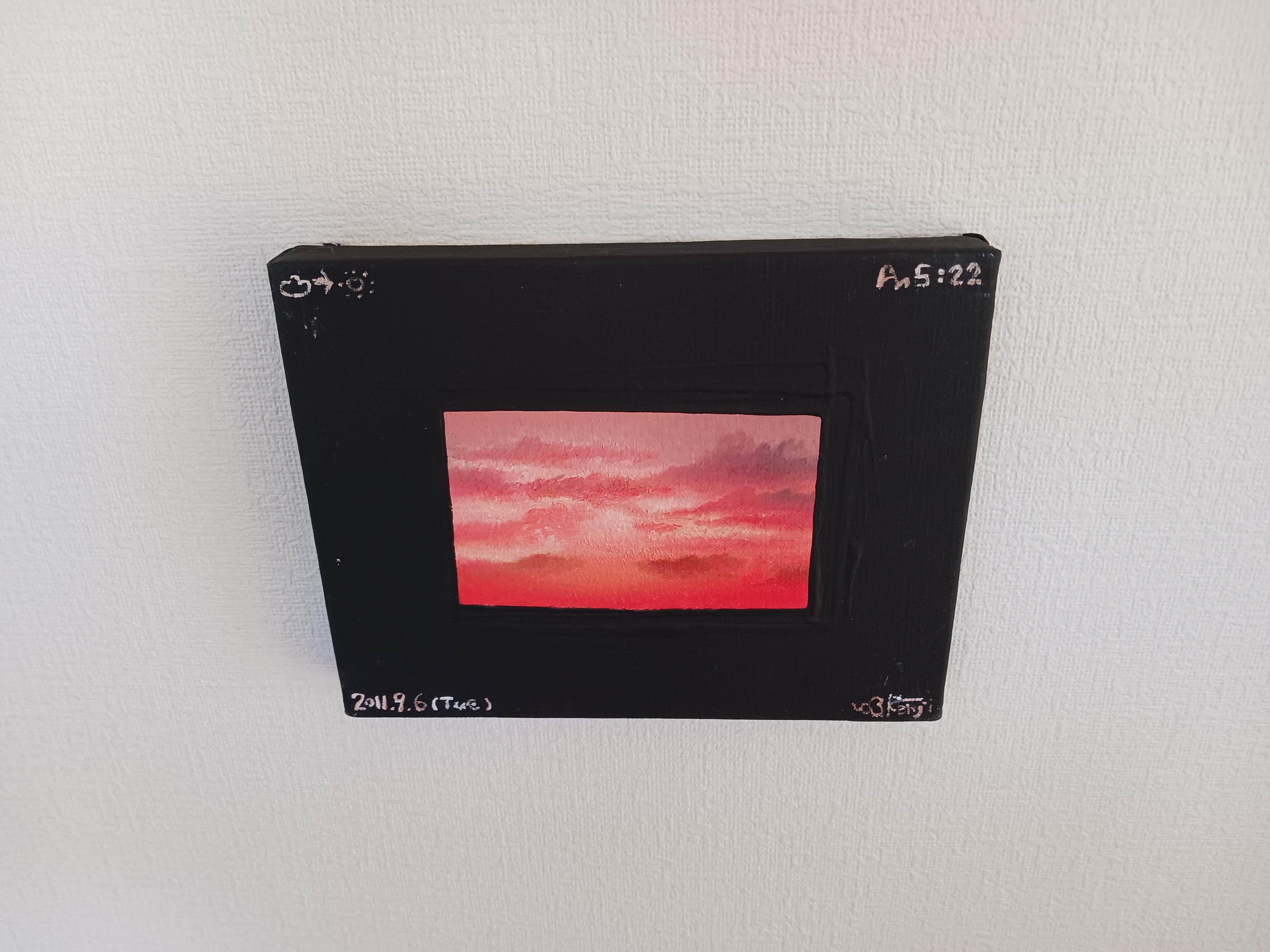 枠の色はアクリルジェッソ、中心の空は油絵具で描いています。