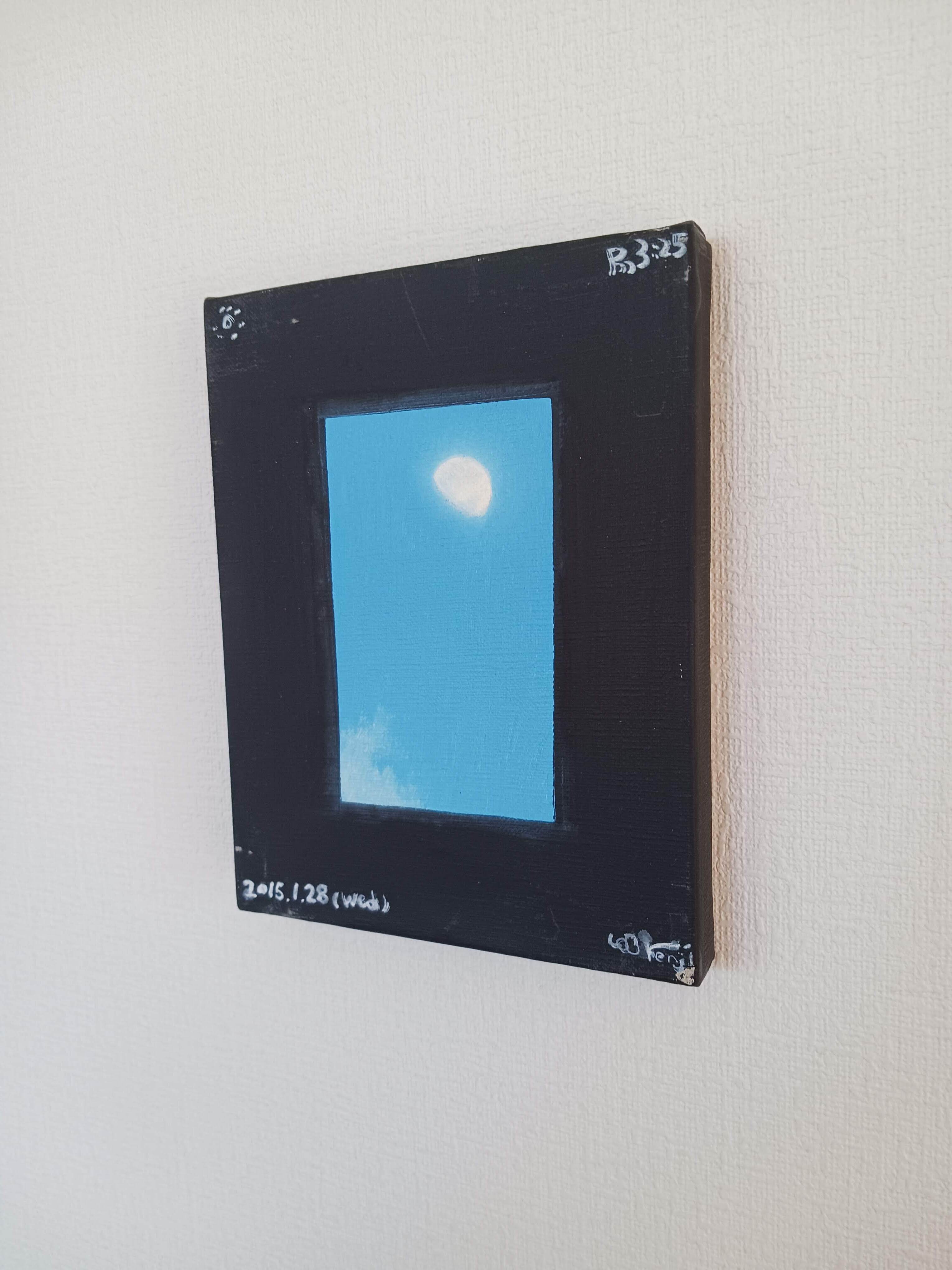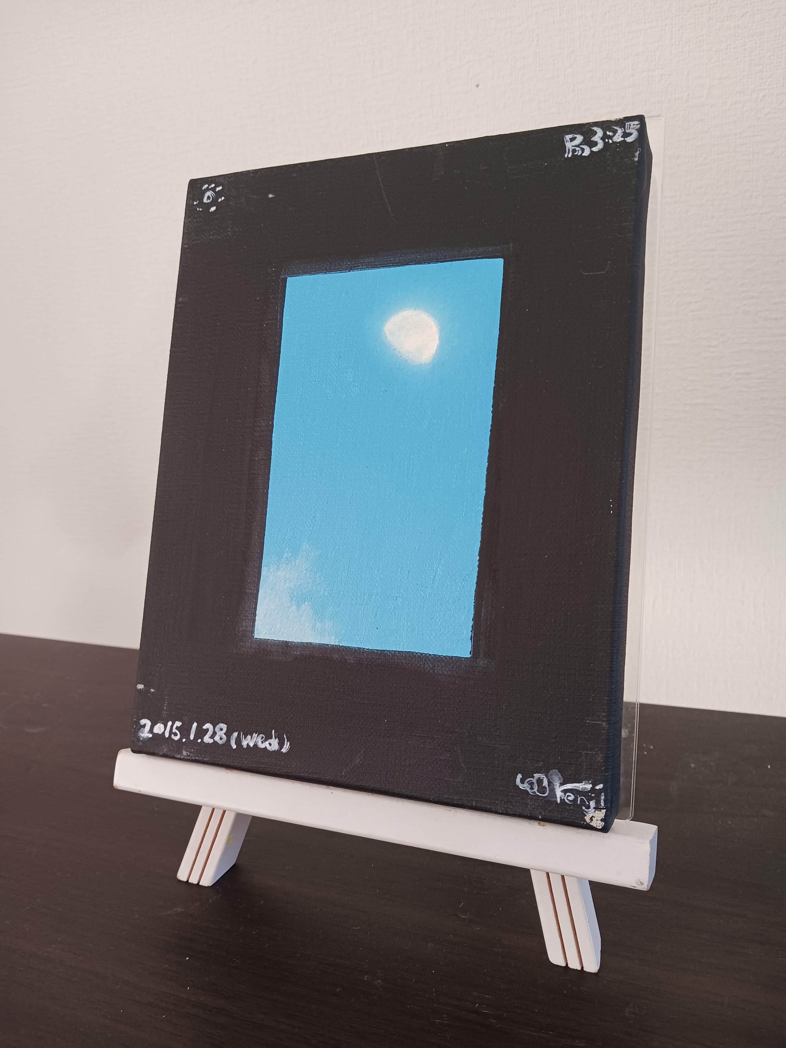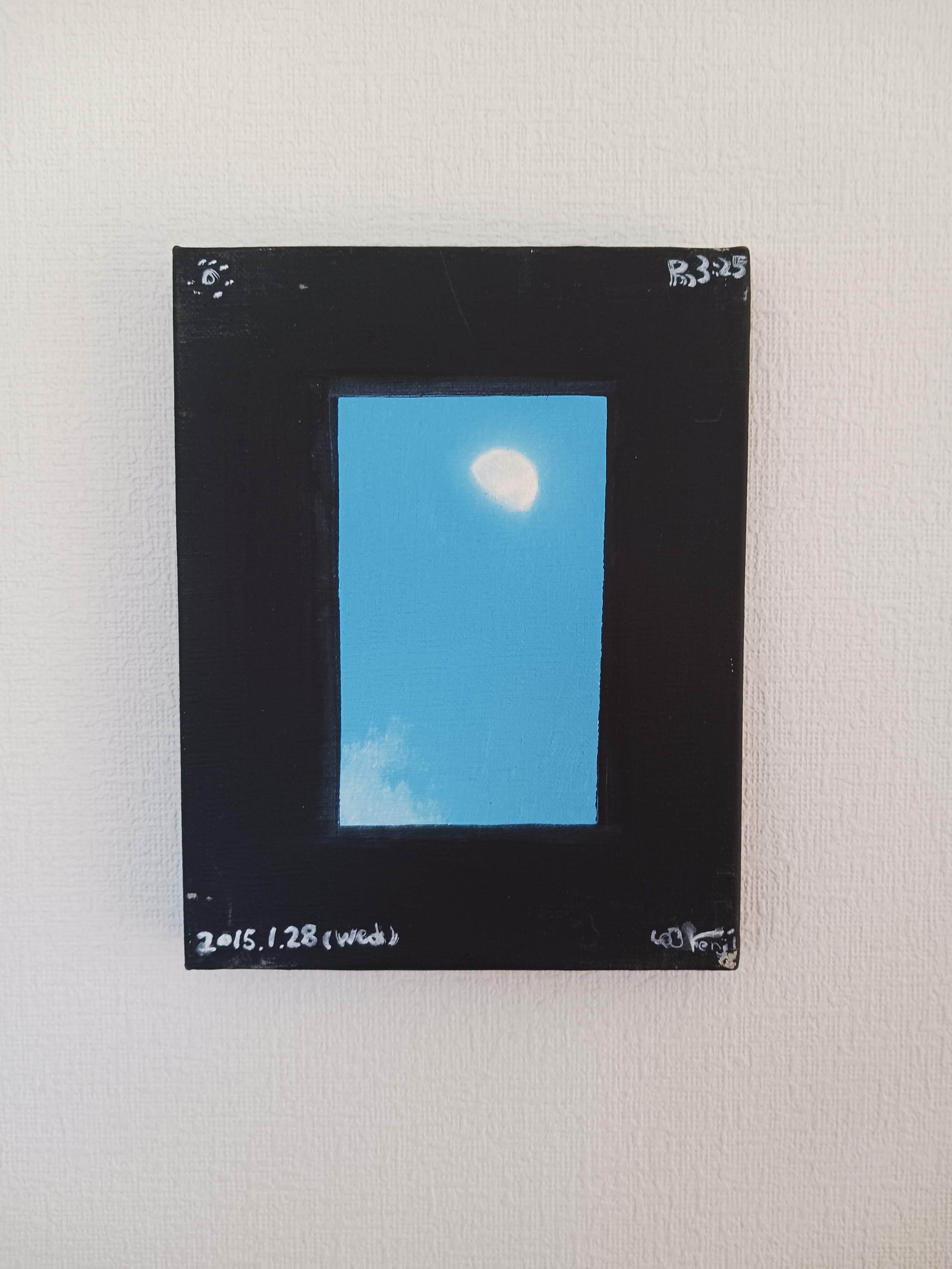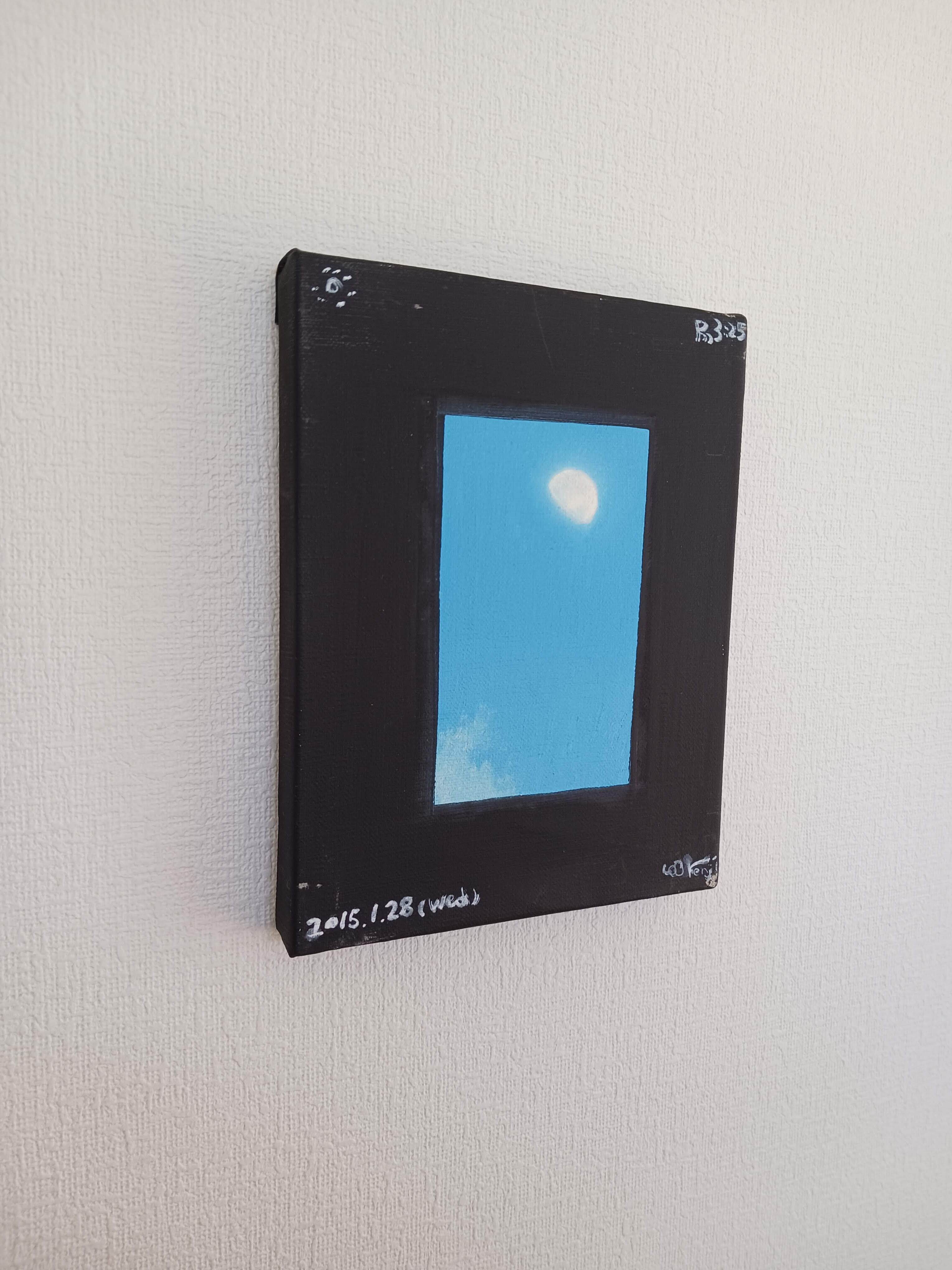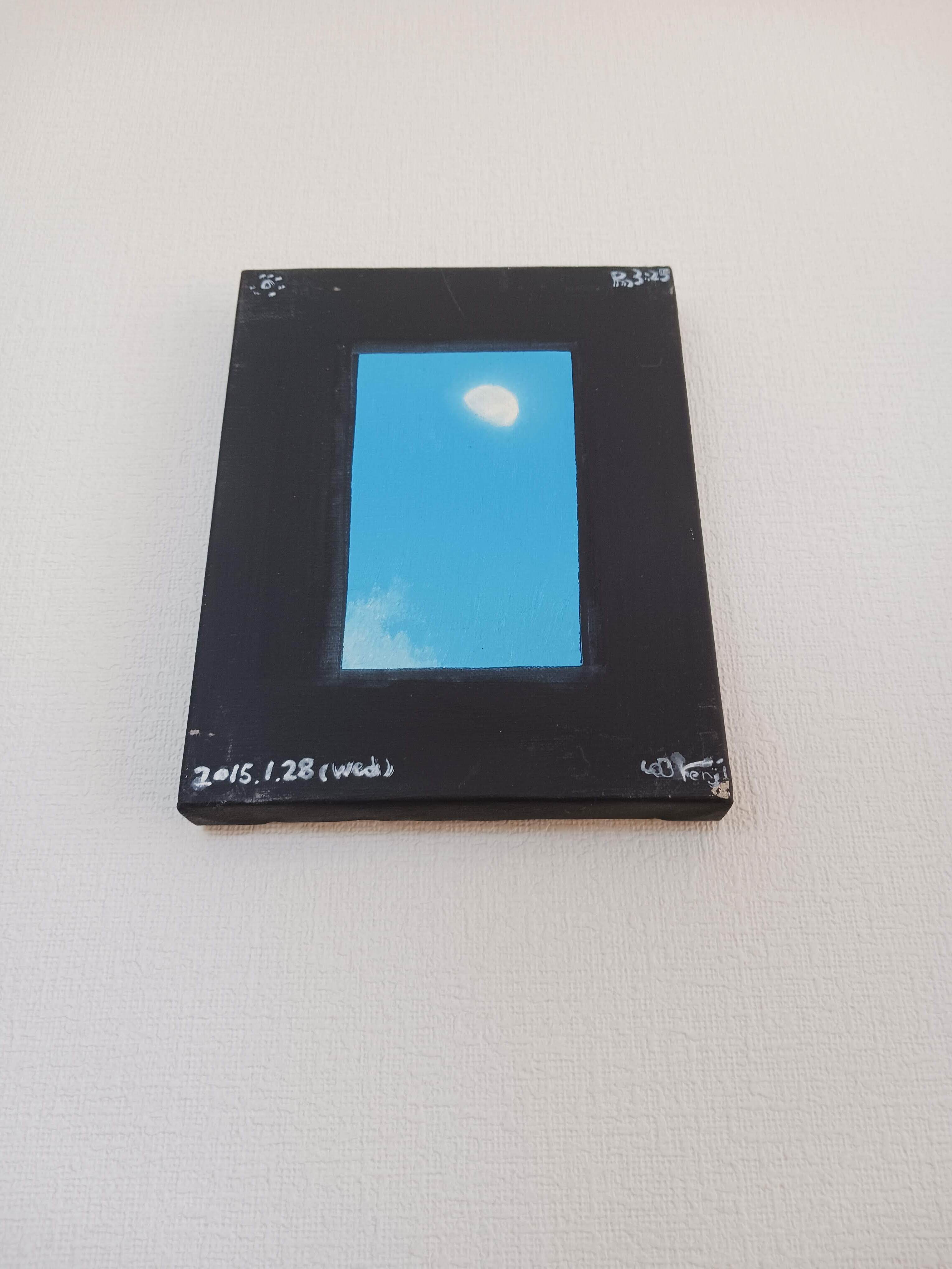 枠の色はアクリルジェッソ、中心の空は油絵具で描いています。